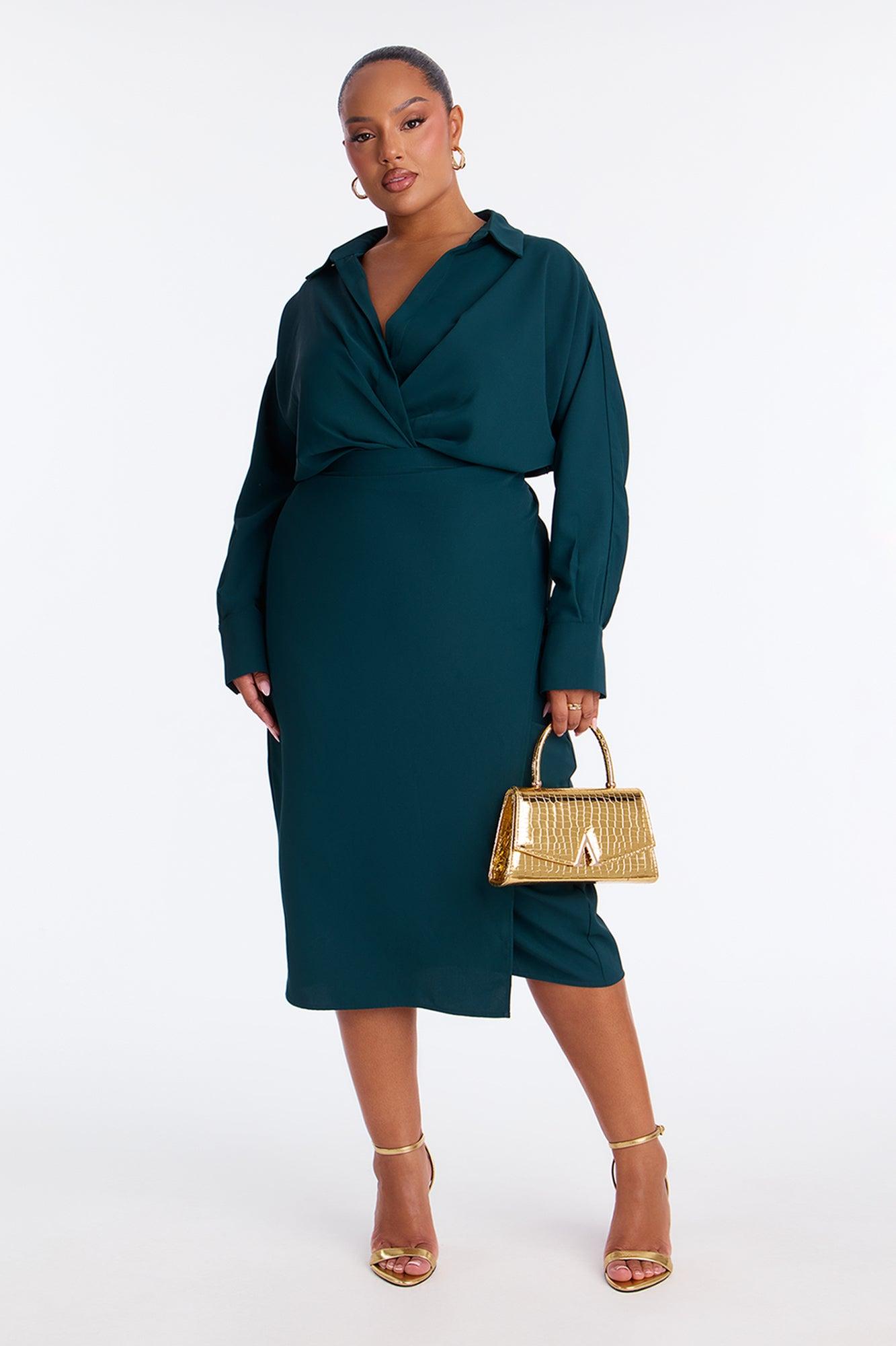 Giada Wrap Shirt Midi Dress - Hunter Female