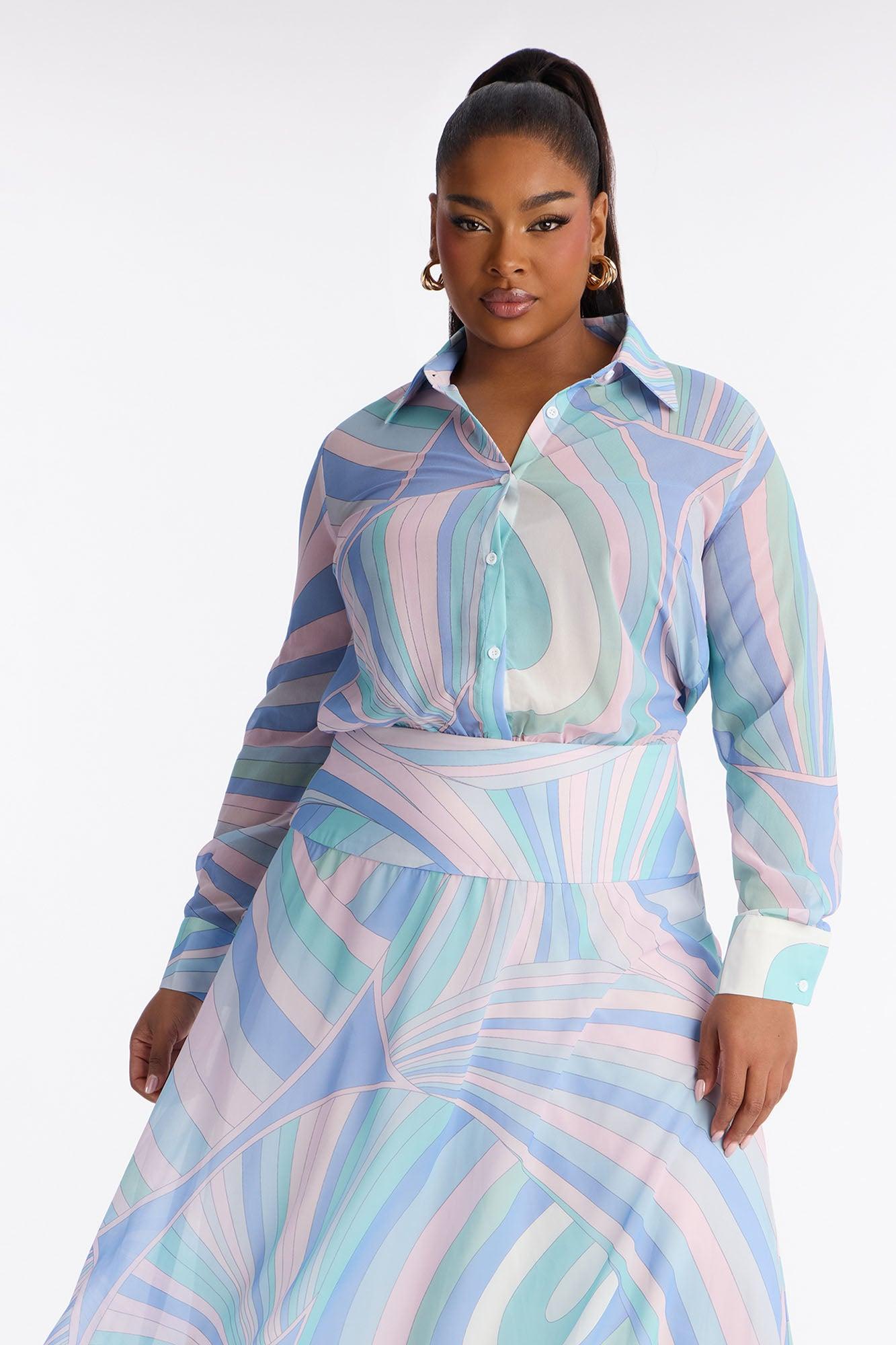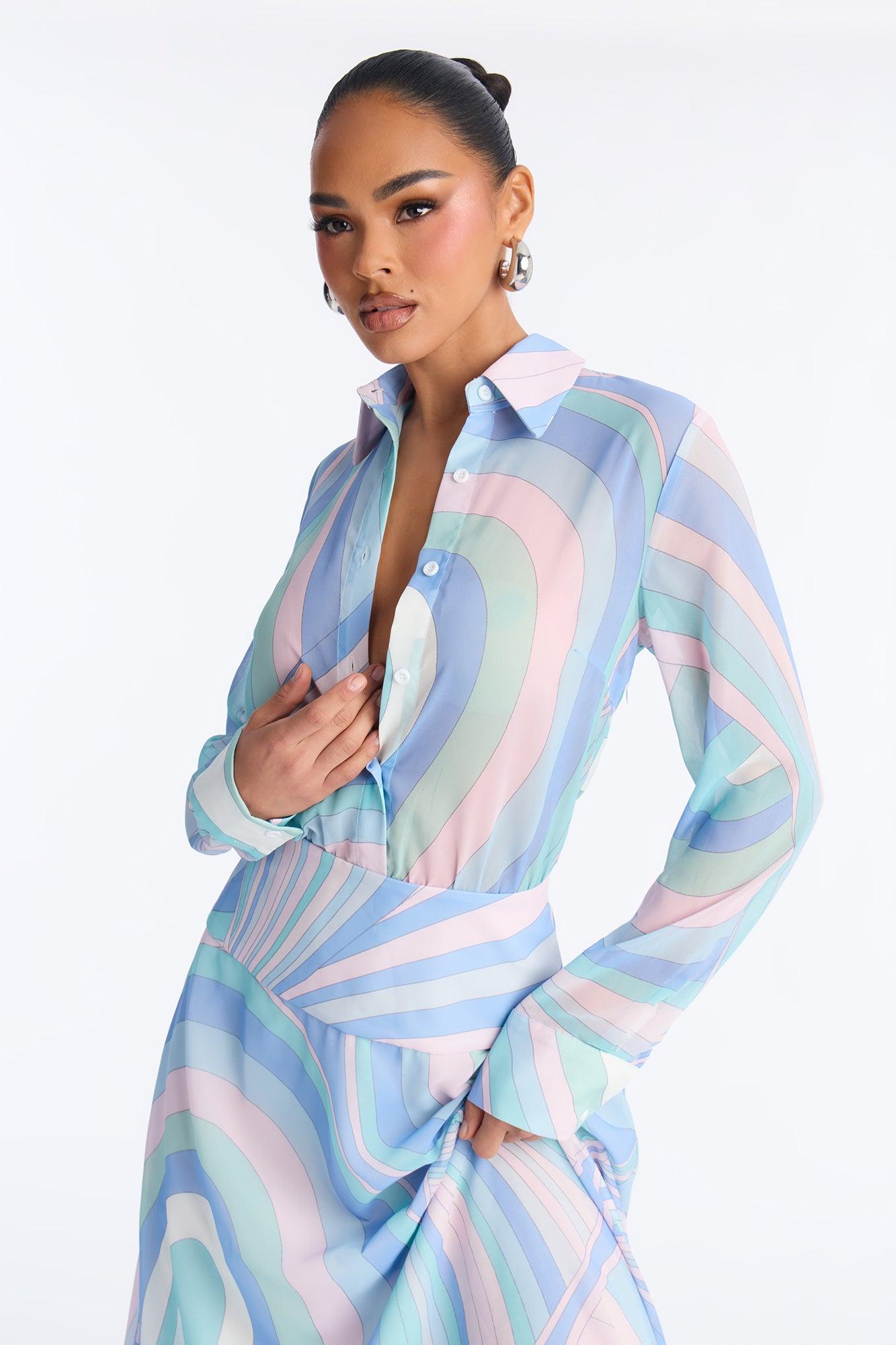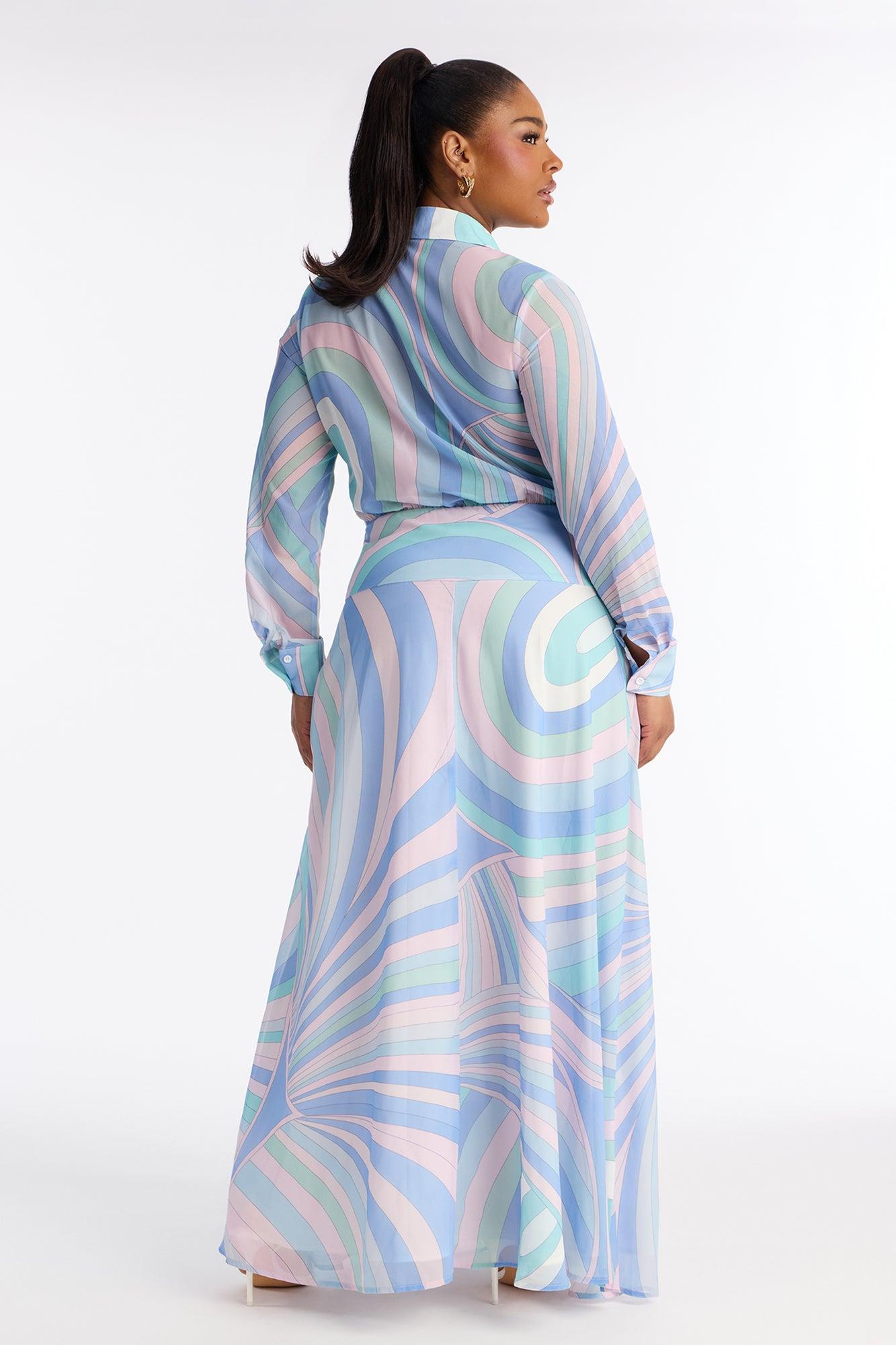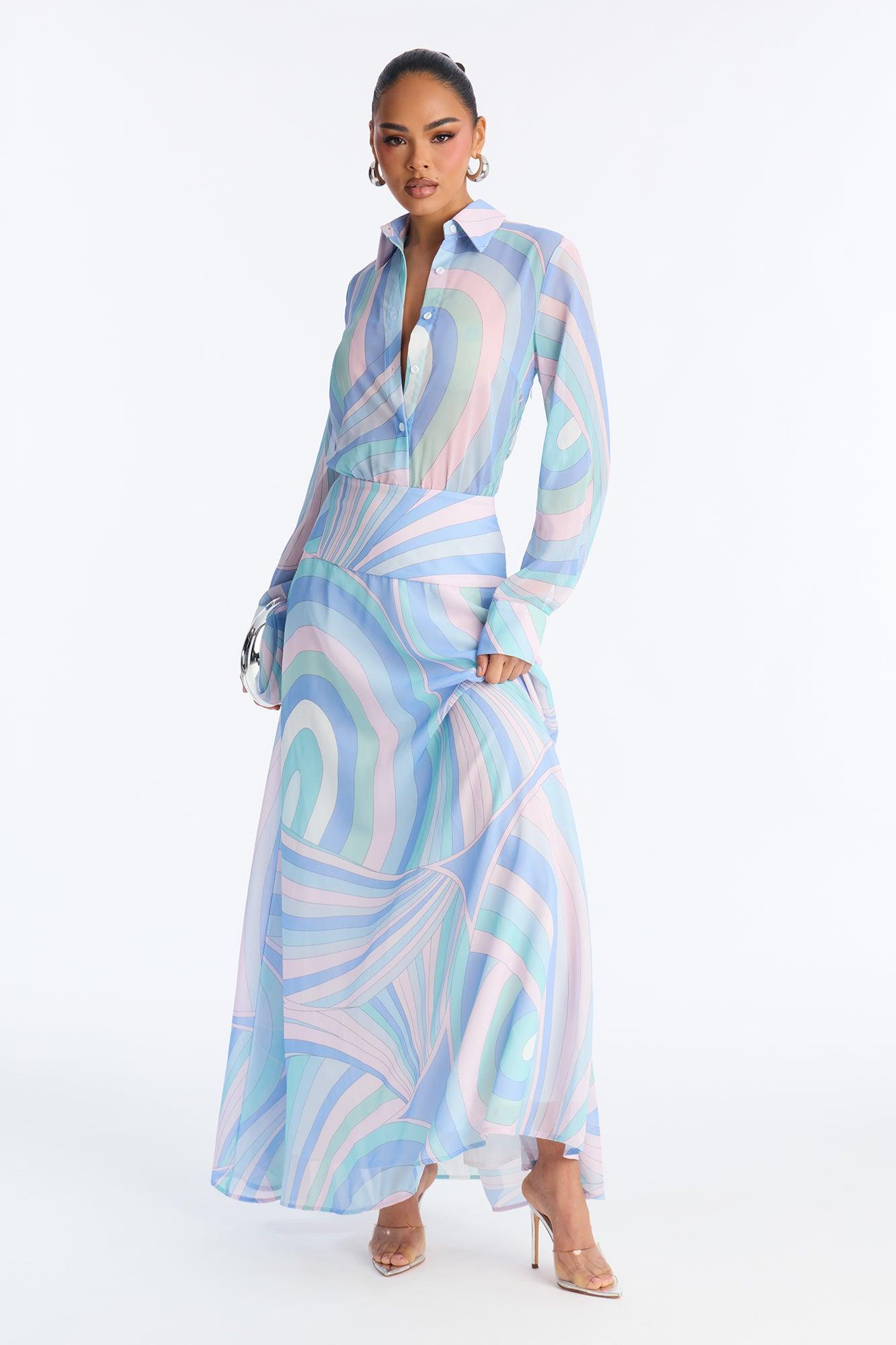 Gianna Button Up Chiffon Maxi Dress - Blue/combo Female