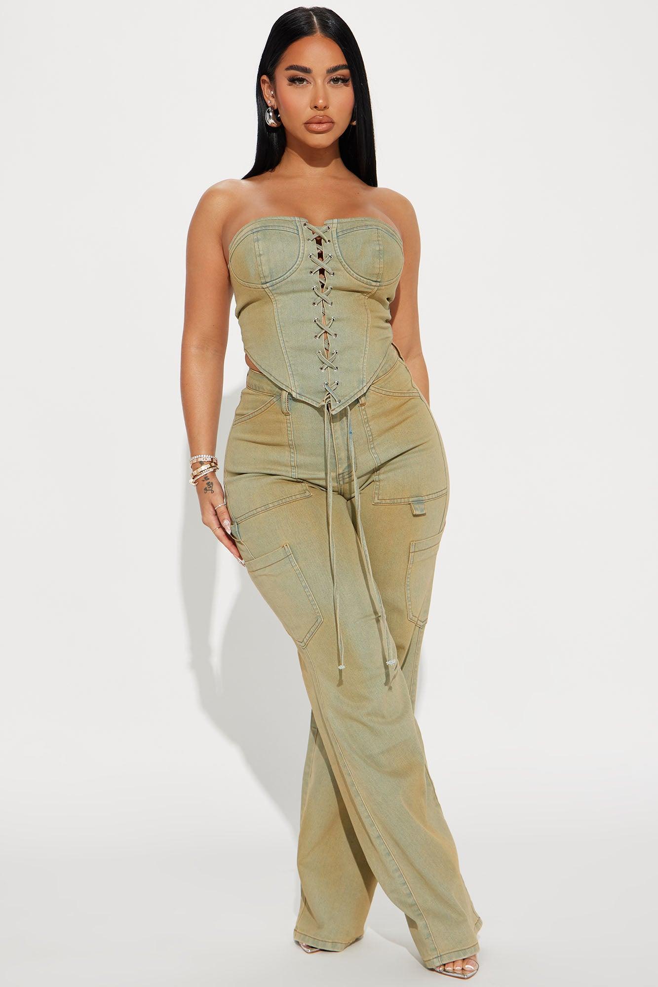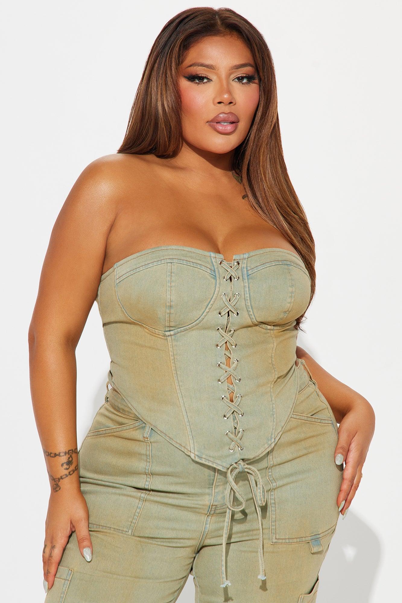 Available In Light Wash. Corset Top Zipper Closure Tinted Adjustable Ties Medium Stretch Lace Up Front Pair With "Gianna Tinted Utility Straight Leg Jeans”. Disclaimer: Due To The Wash Process Each Garment Is Unique. 50% Cotton 40% Polyester 9% Viscose 1% Spandex Imported California Proposition 65 WARNING: Cancer and Reproductive Harm - www.P65Warnings.ca.gov.