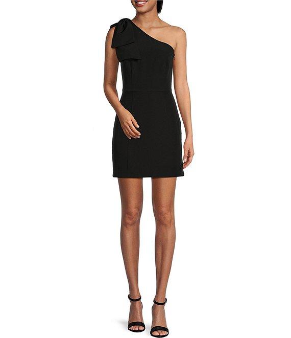 Gianni Bini Deliah One Bow Shoulder Sleeveless Sheath Crepe Mini Dress