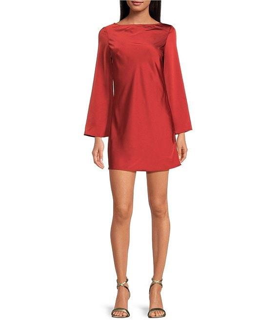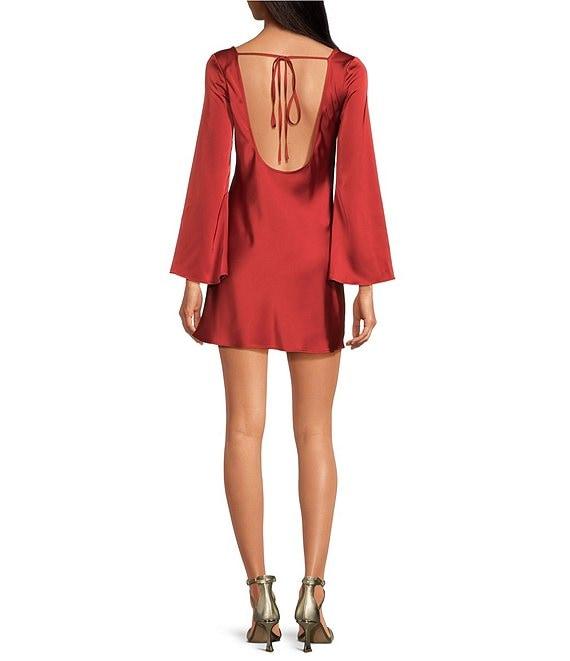Gianni Bini Dionne Satin Long Sleeve Open Back Mini Dress
