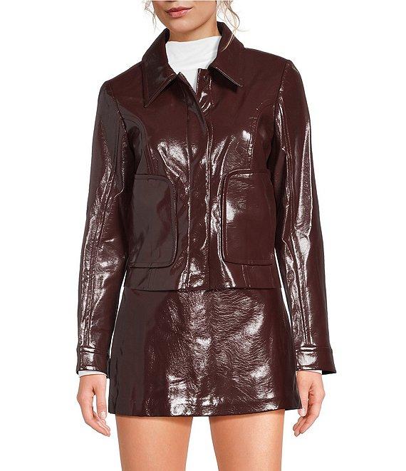 From Gianni Bini, this jacket features: Luxe coated fabrication Collar neckline Long sleeves Straight hemline Center front snap closure 2 front pockets Approx. 30.5" length Polyurethane Dry clean Imported. Dillard's Exclusive