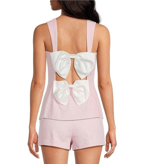 From Gianni Bini, this top features: Tweed fabrication Square neckline Sleeveless Back bow detail Gold hardware Invisible side zip closure Lined Approx. 21.5" length Cotton/polyester/elastane Machine wash cold/dry flat Remove ornaments before cleaning Imported. Dillard's Exclusive.