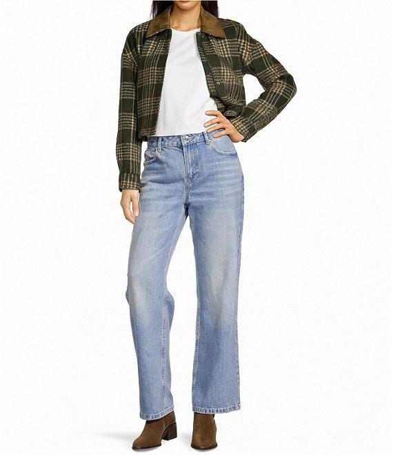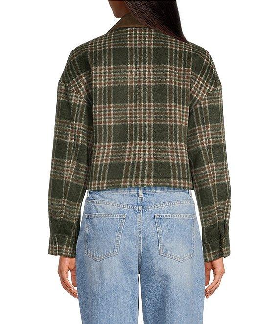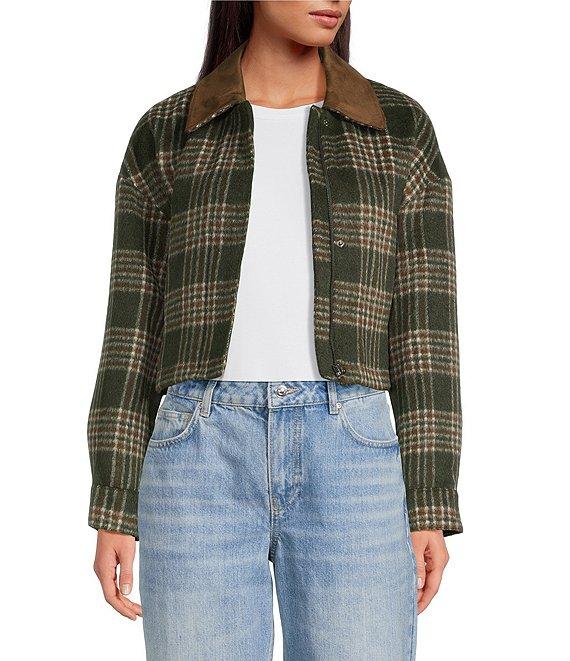 From Gianni Bini, this jacket features: Brushed plaid fabrication Bomber jacket silhouette Collar neckline Long sleeves Suede collar detail Straight hemline Center front zip and snap closure Approx. 18.4" in length Polyester Dry clean Imported.
