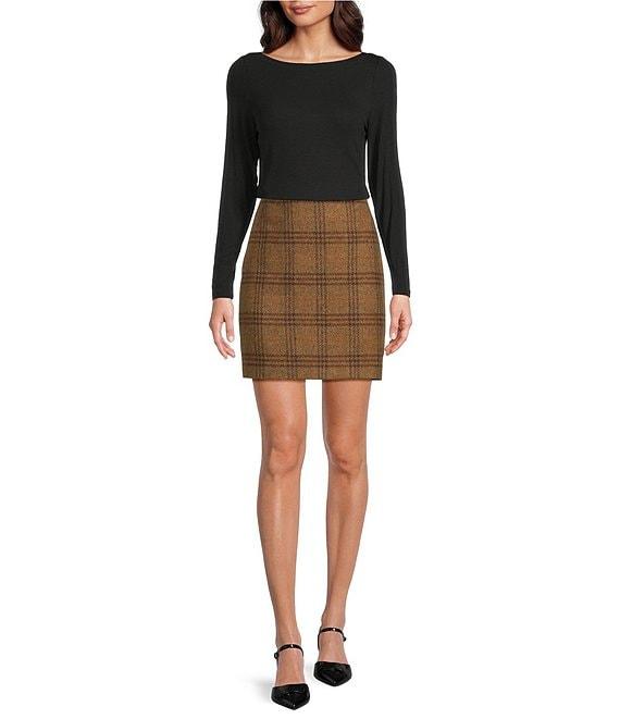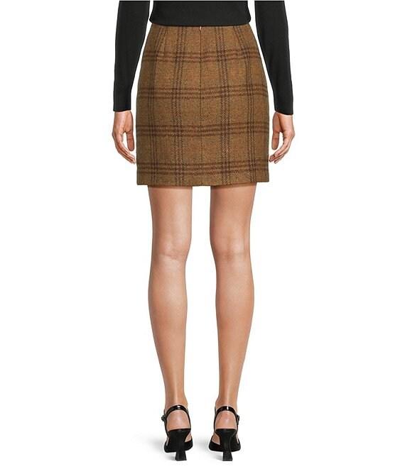From Gibson & Latimer, this skirt features: Glen plaid print Woven wool blend fabrication Midrise waistline Pull-on construction Side zipper closure Pencil silhouette Classic fit Fully lined Straight hemline Mini length Approx. 17.25" HPS in length Polyester, Acrylic, Nylon, Rayon, Wool Professional dry cleaning only Imported. Dillard's Exclusive