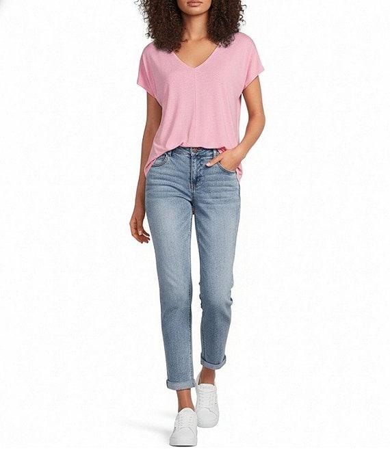 Gibson & Latimer Knit V-Neck Dropped Short Sleeve Shell Shirttail Tee Shirt