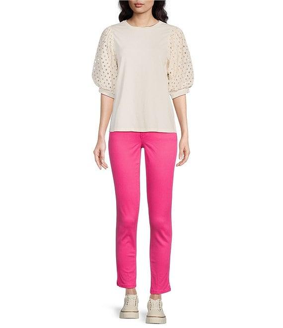 From Gibson & Latimer, these jeans feature: Stretch twill fabrication Skinny leg Elastic waistband Functional front and back pockets Power mesh hidden slimming panel Front button & zip closure Approx. 25"- 27" inseam Cotton/polyester/rayon/spandex Machine wash Imported.