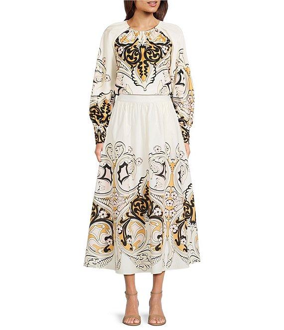 From Gibson & Latimer, this skirt features: Woven fabrication Floral print Regular rise waistline Back elastic waistband A-line silhouette Classic fit Fully lined Flounce hemline Maxi length Pull-on construction Approx. 37.25" HPS in length Cotton/polyester Machine wash on cold cycle/wash with similar colors and fabrications/promptly remove from wash/tumble dry on low/use cool iron on low Imported. Dillard's Exclusive.