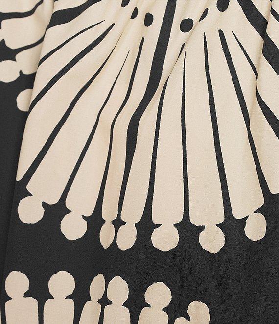 From Gibson & Latimer, this dress features: Woven fabrication Geometric fan print Mid rise waistline Pull on construction Back internal elastic waistband Side seam pockets A-line silhouette Classic fit Flounce hemline Midi length Approx. 37.625" HPS in length Cotton Machine wash on cool gentle cycle, wash with similar colors and fabrications, use non-chlorine bleach if needed, tumble dry on low, use cool iron if needed. Imported. Dillard's Exclusive
