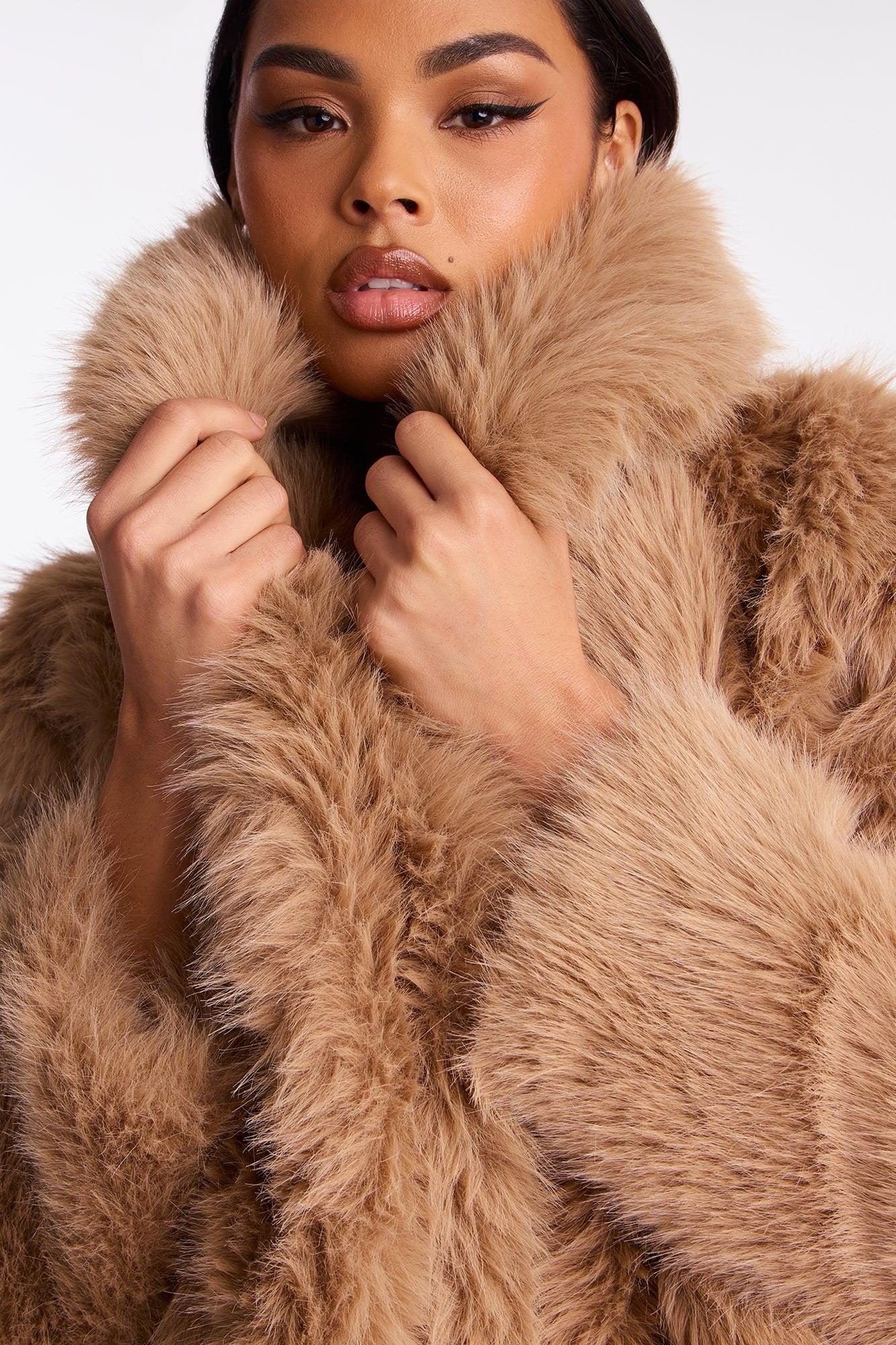 Available In Black, Cream, Grey, Light Blue, Mocha And Plum. Coat Collar Long Sleeve Faux Fur Cropped Fully Lined Self/ Faux fur/Lining: 100% Polyester Imported California Proposition 65WARNING: Cancer and Reproductive Harm - www.P65Warnings.ca.gov.