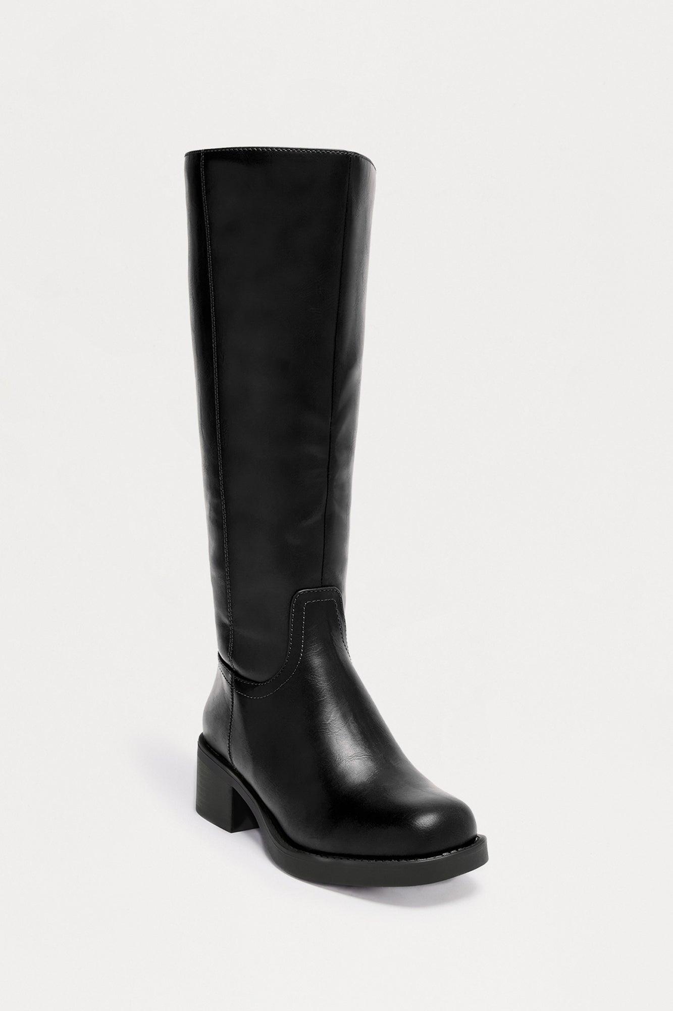 Available In Black, Camel And Cognac. Knee High Flat Boots Round Toe 2" Low Block Heel Imported California Proposition 65WARNING: Cancer and Reproductive Harm - www.P65Warnings.ca.gov.