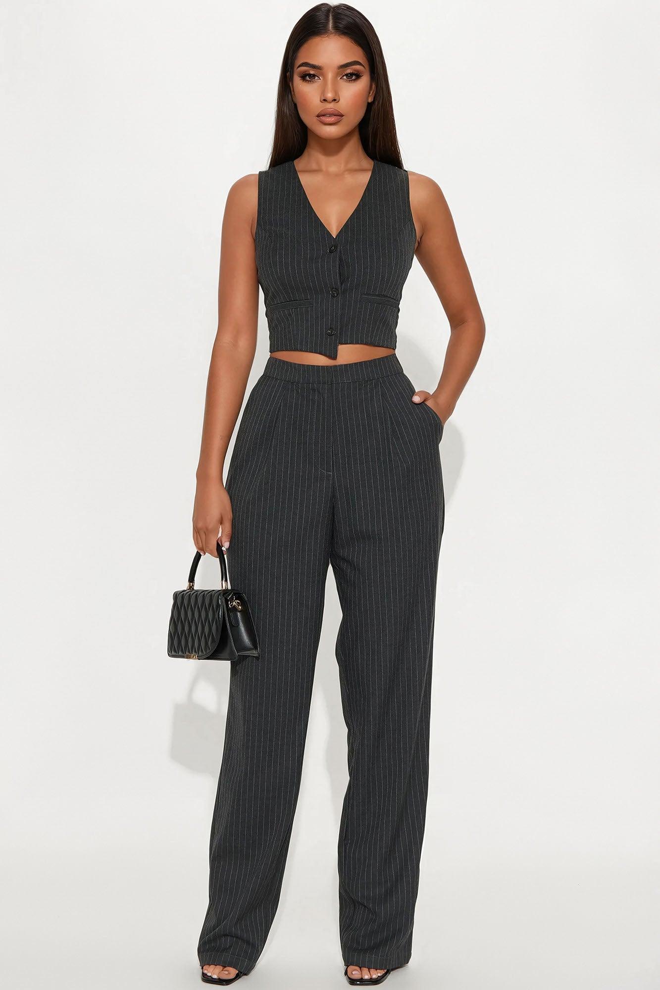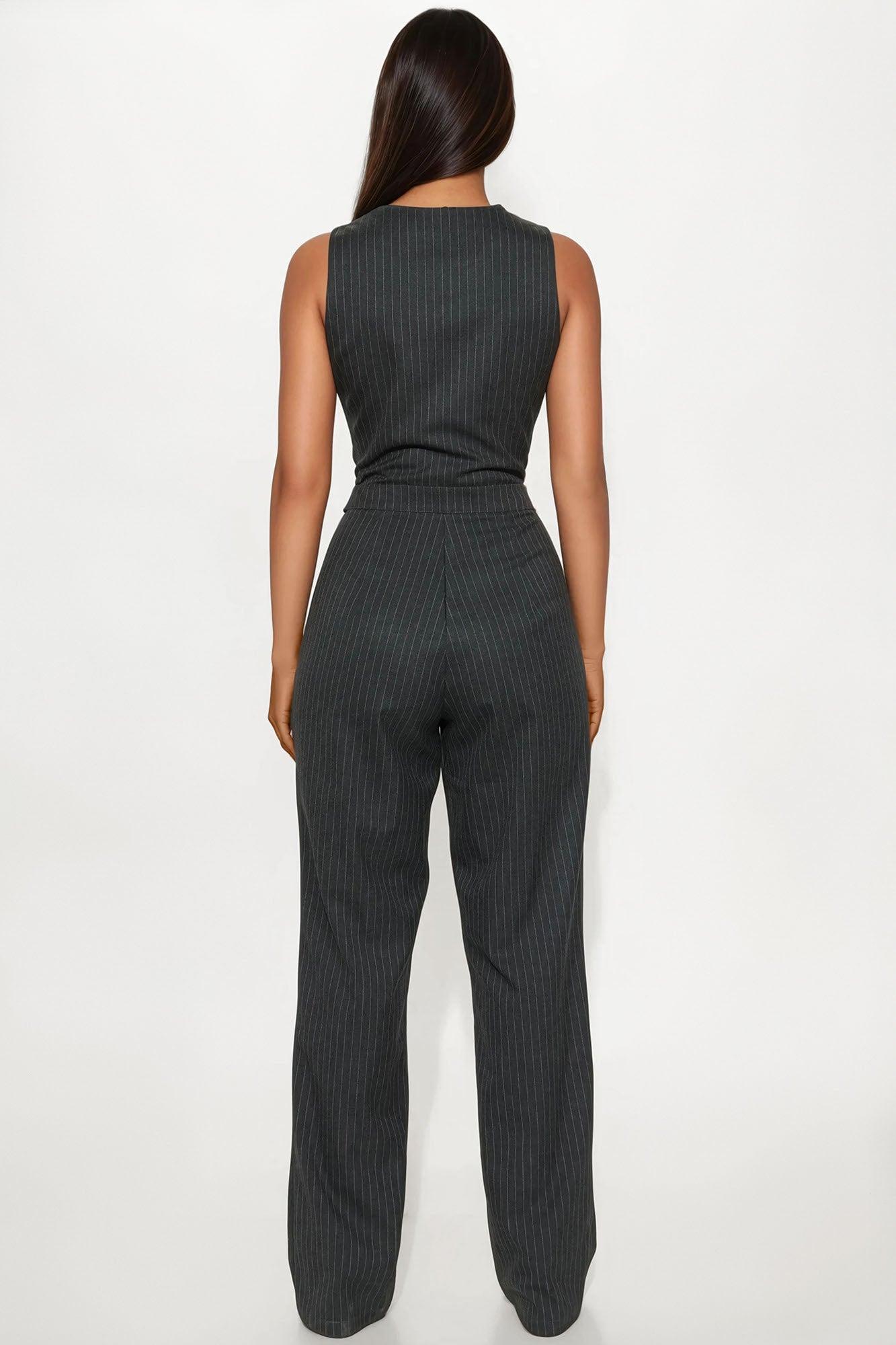 Available In Dark Grey. Jumpsuit Button Up Vest Top Lined Top Front Fly Zip Closure Side Pockets Wide Leg Non Stretch Inseam = 33" Self: 69% Polyester 29% Rayon 2% Spandex Lining: 100% Polyester Imported California Proposition 65WARNING: Cancer and Reproductive Harm - www.P65Warnings.ca.gov.