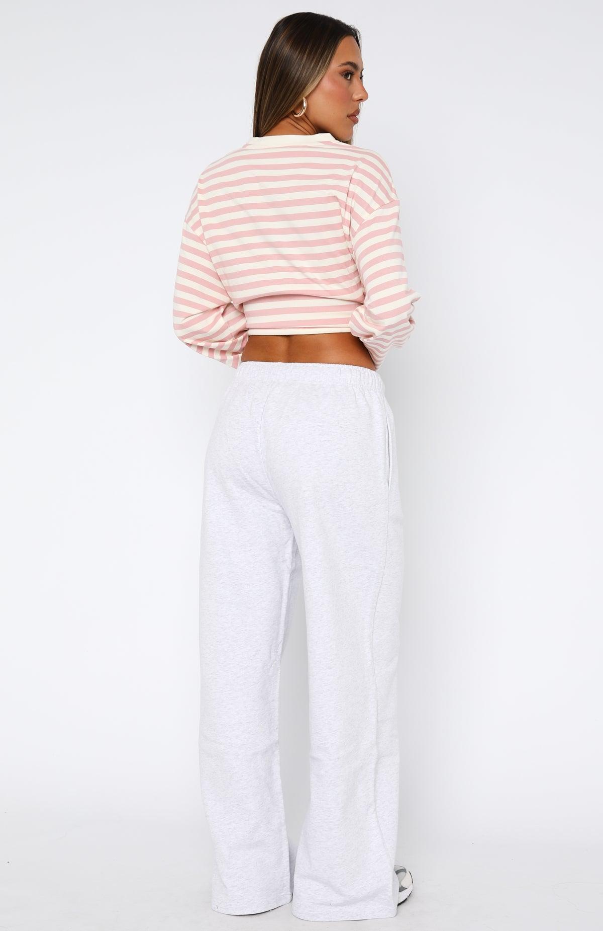 Comfort is key but looking cute and comfy is a must! The Give It A Rest Wide Leg Sweatpants in Grey Marle features a thick elasticated waistband with internal drawstring, wide leg design and side pockets. Embrace the cuteness by pairing with the First Time Here Long Sleeve Tee Pink/Cream Stripe and colourful sneakers. 100% Cotton Mik is 171cm & wears a S