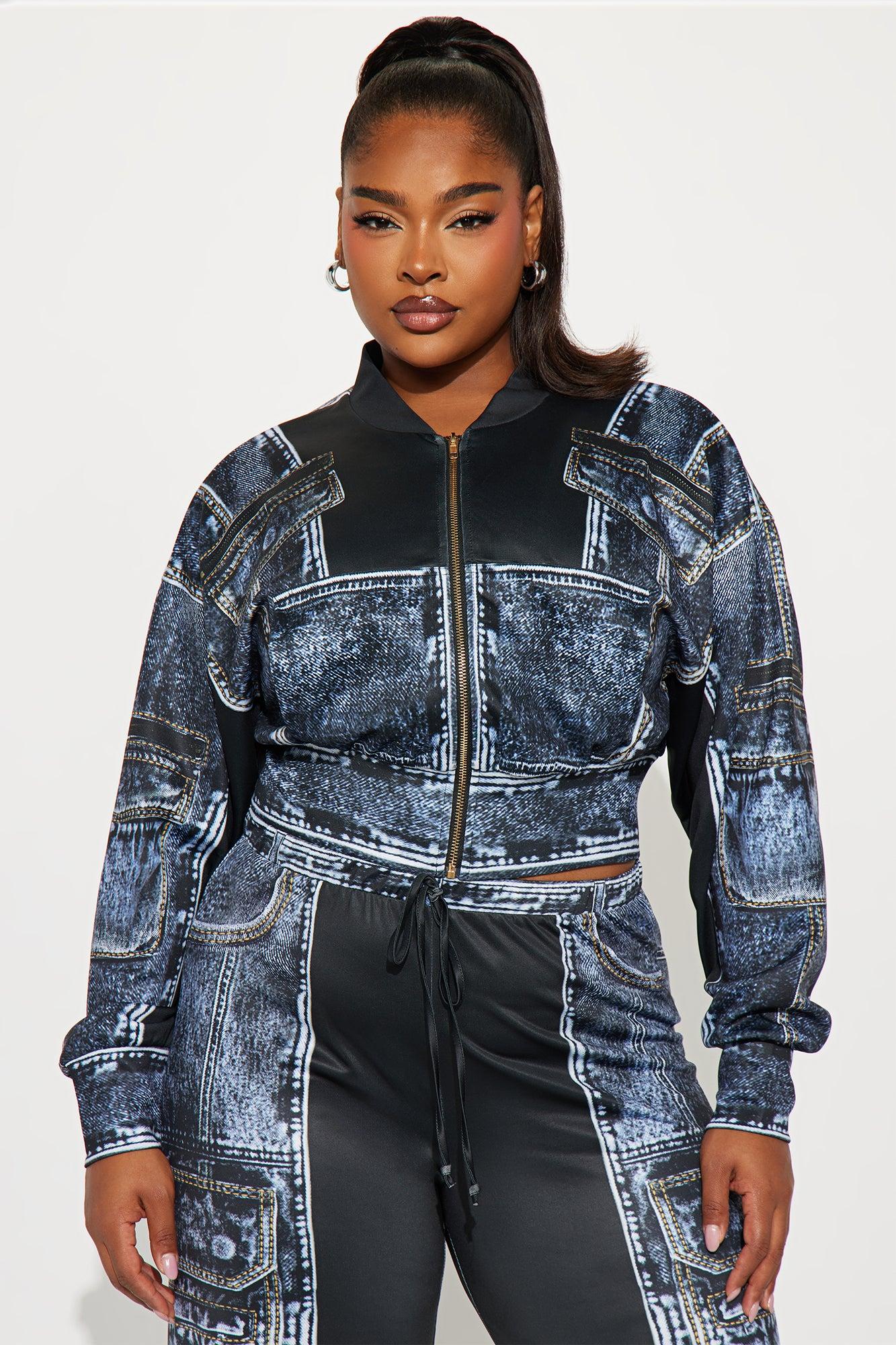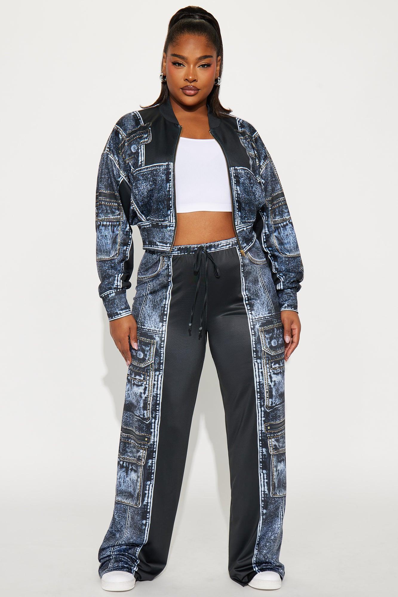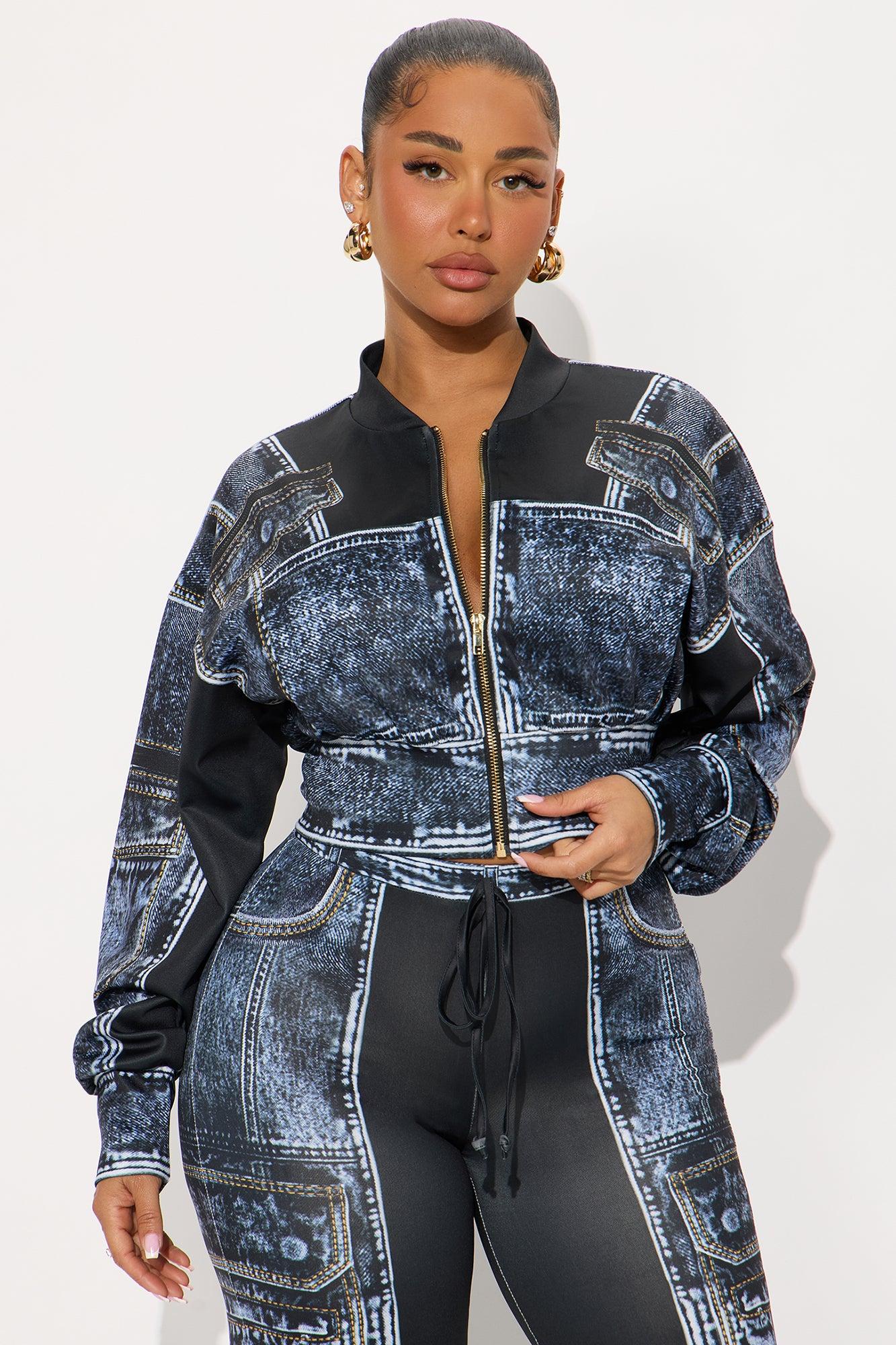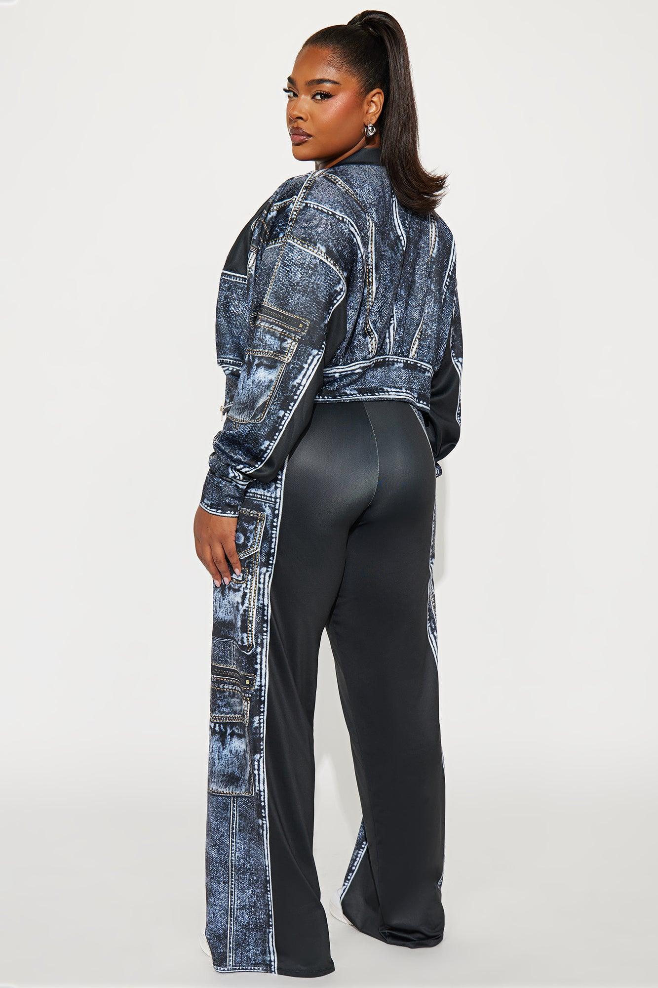 Give Me Details Denim Print Jacket Pant Set - Black/combo Female