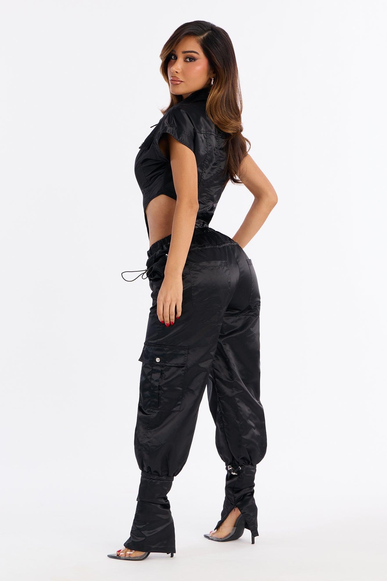 Giving Attitude Satin Bodysuit Pant Set - Black Female