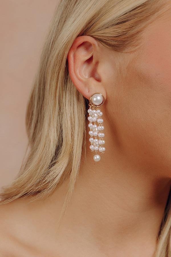 - Calling all glam girlies! These fabulous earrings are a chic must-have. Their pearl drop design adds a luxe look to any outfit. - Gold colored metal material - Faux pearl studs with a drop design with dangling clusters of faux pearls - Post backs - Size: 2.5 inches