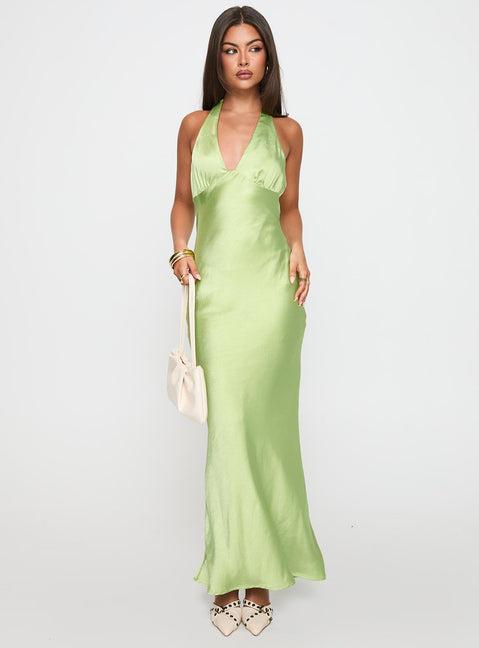 Halter satin Maxi dress V-neckline, silicone lining inside bust, soft ruched bust, invisible zip fastening at side, adjustable halter straps, straight hem Non-stretch material, fully lined Main: 100% polyester Lining: 100% polyester Cold gentle machine wash Length of size US 2 / AU 6 shoulder to hem: 144cm / 56.6in