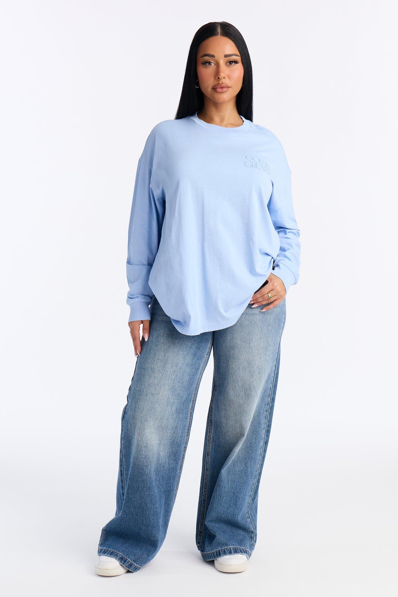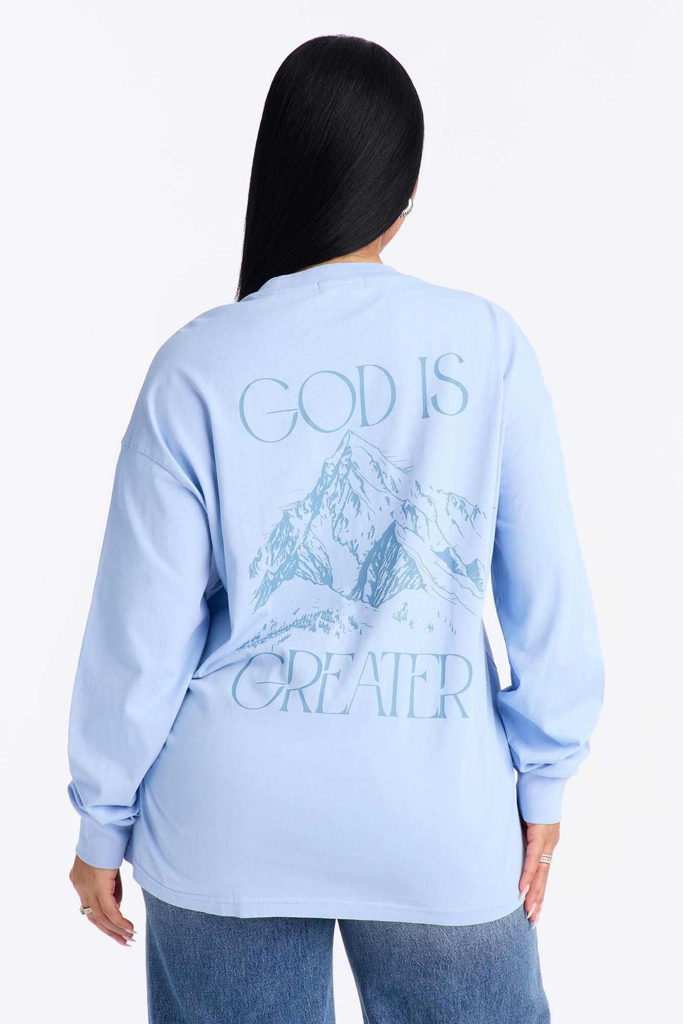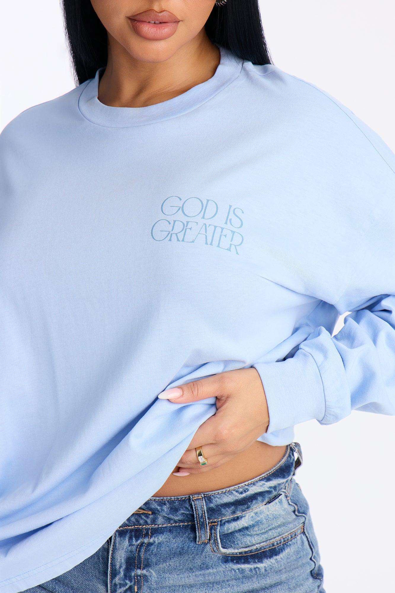 God Is Greater Oversize Long Sleeve Tee - Light Blue Female