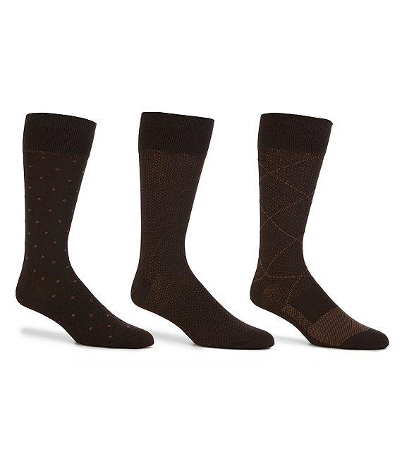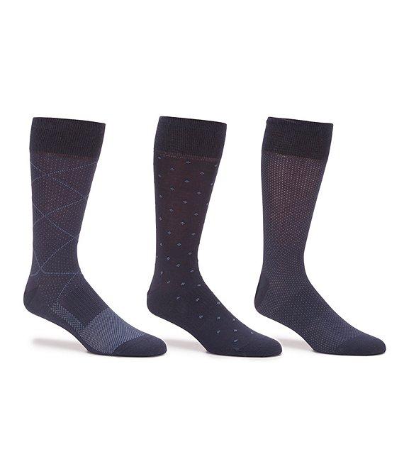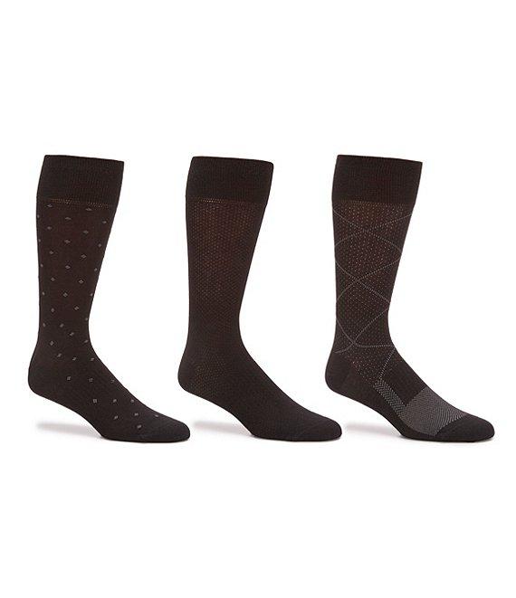 From Gold Label Roundtree & Yorke, these dress socks feature: assorted three-pack: argyle, dots and mini argyle crew length anti-microbial reinforced arch for secure fit soft cotton blend for all day comfort One size fits men's shoe sizes 9-13 cotton/nylon/spandex machine wash Imported.