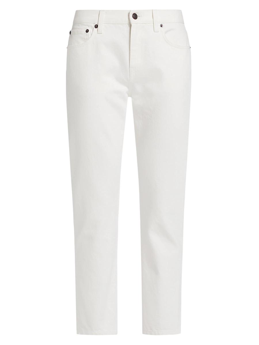 The Rows Goldin jeans feature a mid-rise, cigarette-leg silhouette crafted of rigid denim. Classic five-pocket styling and clean hems finish this cropped style. Belt loops Five-pocket styling Zip fly Button closure 100% cotton Lined Dry clean Made in Italy SIZE & FIT Model measurements: 510 tall Model is wearing a US size 4 ABOUT THE BRAND Synonymous with impeccable minimalism and high-quality tailoring, The Row came to life in 2006 under the helm of Ashley and Mary-Kate Olsen. The clean, wear-forever shapes crafted from refined fabrics-and the sleek, simplistic range of shoes and handbags-can only be described as timeless, quiet luxury. Advanced Designer - The Row > The Row > Saks Fifth Avenue > Barneys. The Row. Color: White. Size: 8.