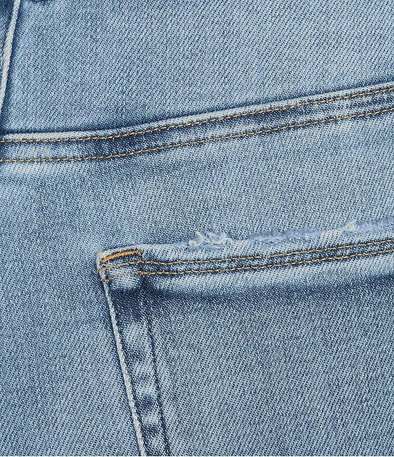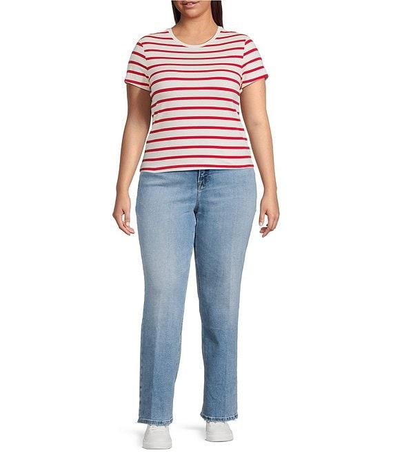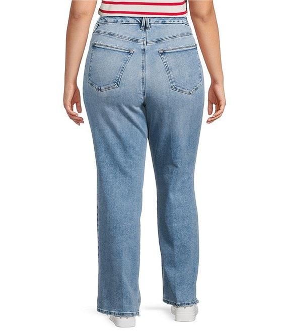 From Good American Plus, these jeans feature: SoftTech denim fabrication High-rise waistline Slim straight leg fit Super stretch Classic 5-pockets Front zip-fly closure Gap-proof waistband Inseam: 32" Cotton, T400, Lycra Wash inside out in cold water with like colors. Tumble dry on low. Imported.