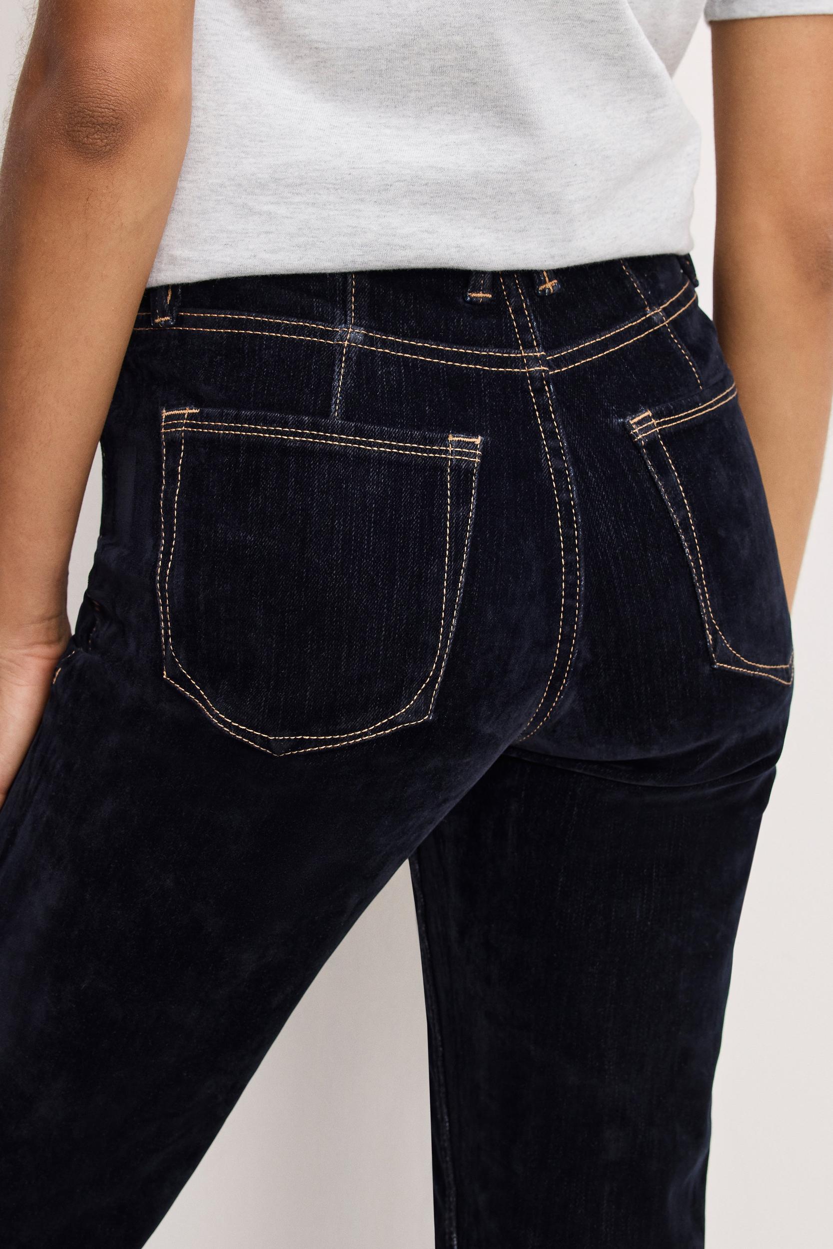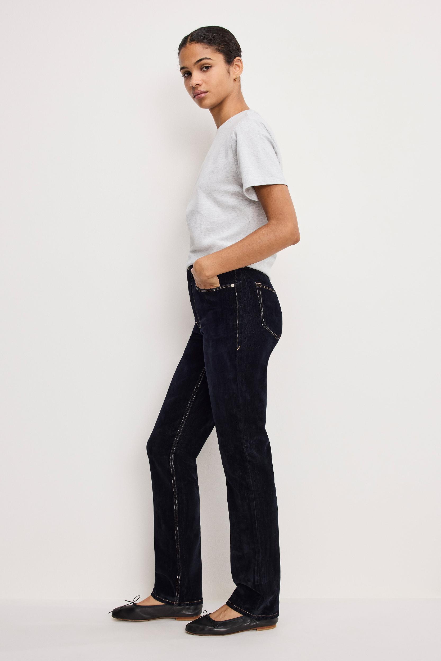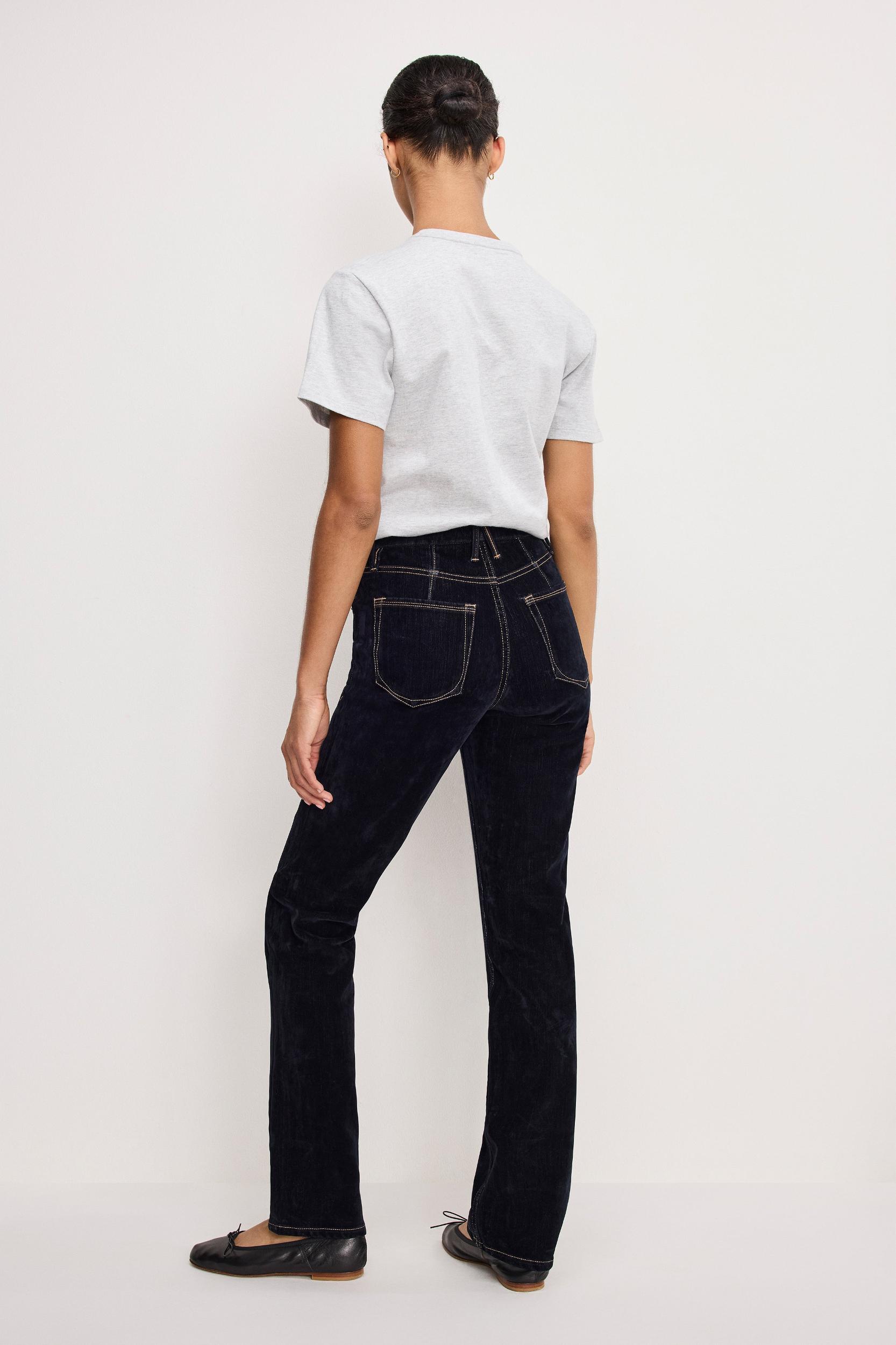 Jeans don’t get more iconic than this straight style that gives you legs for days, and holds you in, in the sexiest way possible. Good Icon Straight Jeans feature a high-rise, designed to be fitted through your hips and thighs with a timeless straight leg from thigh to ankle. Crafted from flocked denim with a touch of stretch, these pants offer optimal comfort and a lustrous and luxurious look. High-rise Straight legs Clean hem Comfort stretch denim Front zip-fly closure Classic 5-pockets Gap-proof waistband Reinforced belt loops Tummy smoothing technology Dark blue flocked denim Inseam: 32" Model is size 0, 5’9” and wearing size 0. Fabric: 75% Cotton, 13% Polyester, 10% Rayon, 2% Spandex Care: Wash inside out in cold water with like colors. Do not bleach. Tumble dry on low. Iron on low heat. Do not dry clean.