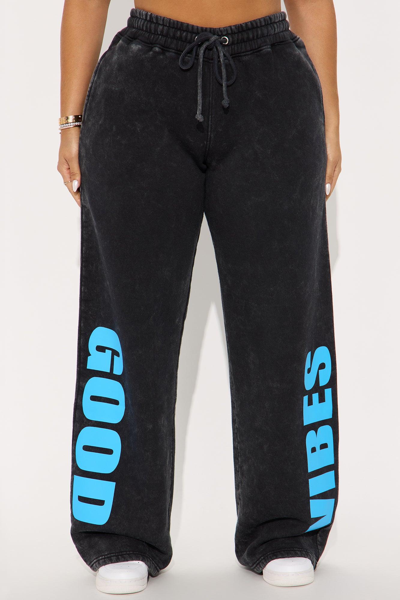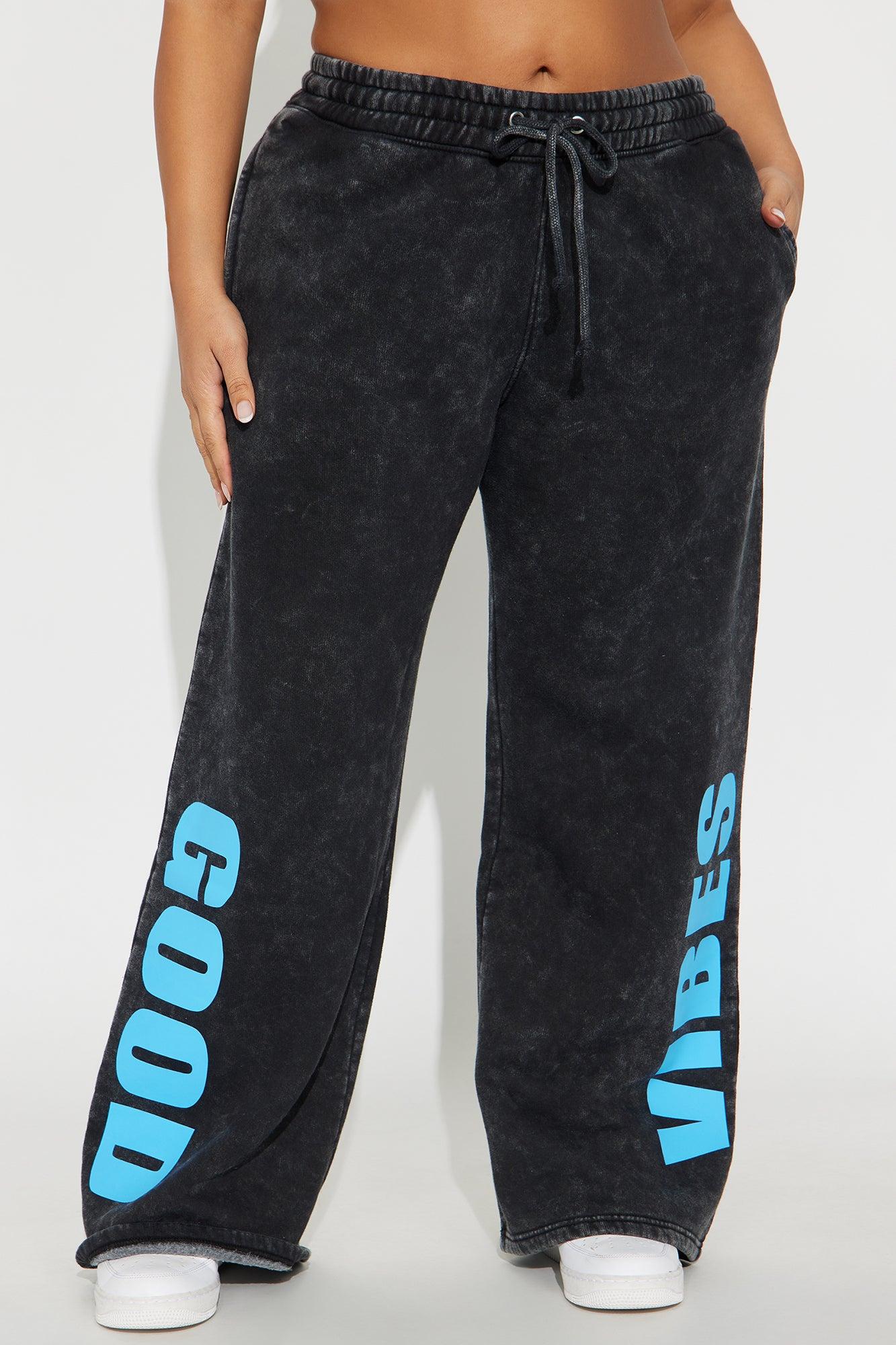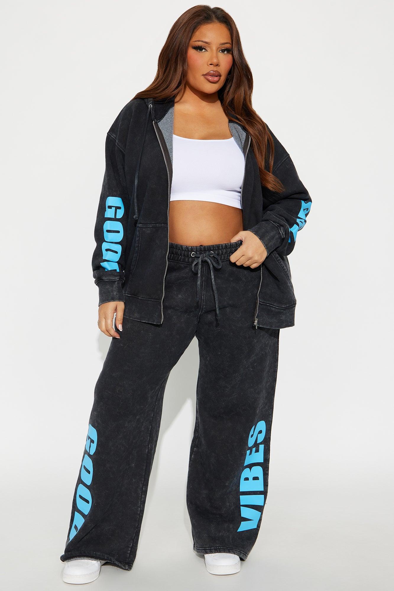 Available In Charcoal/combo. Pants Stretch Elastic Waistband Drawstrings Washed Wide Leg Pair With "Good Vibes AF Washed Fleece Zip Up Sweatshirt" Disclaimer: Due To The Printing Process A Difference In Saturation May Occur. Each Garment Is Unique. Self: 60% Cotton 40% Polyester Imported