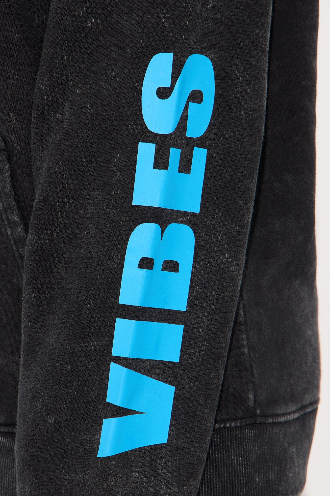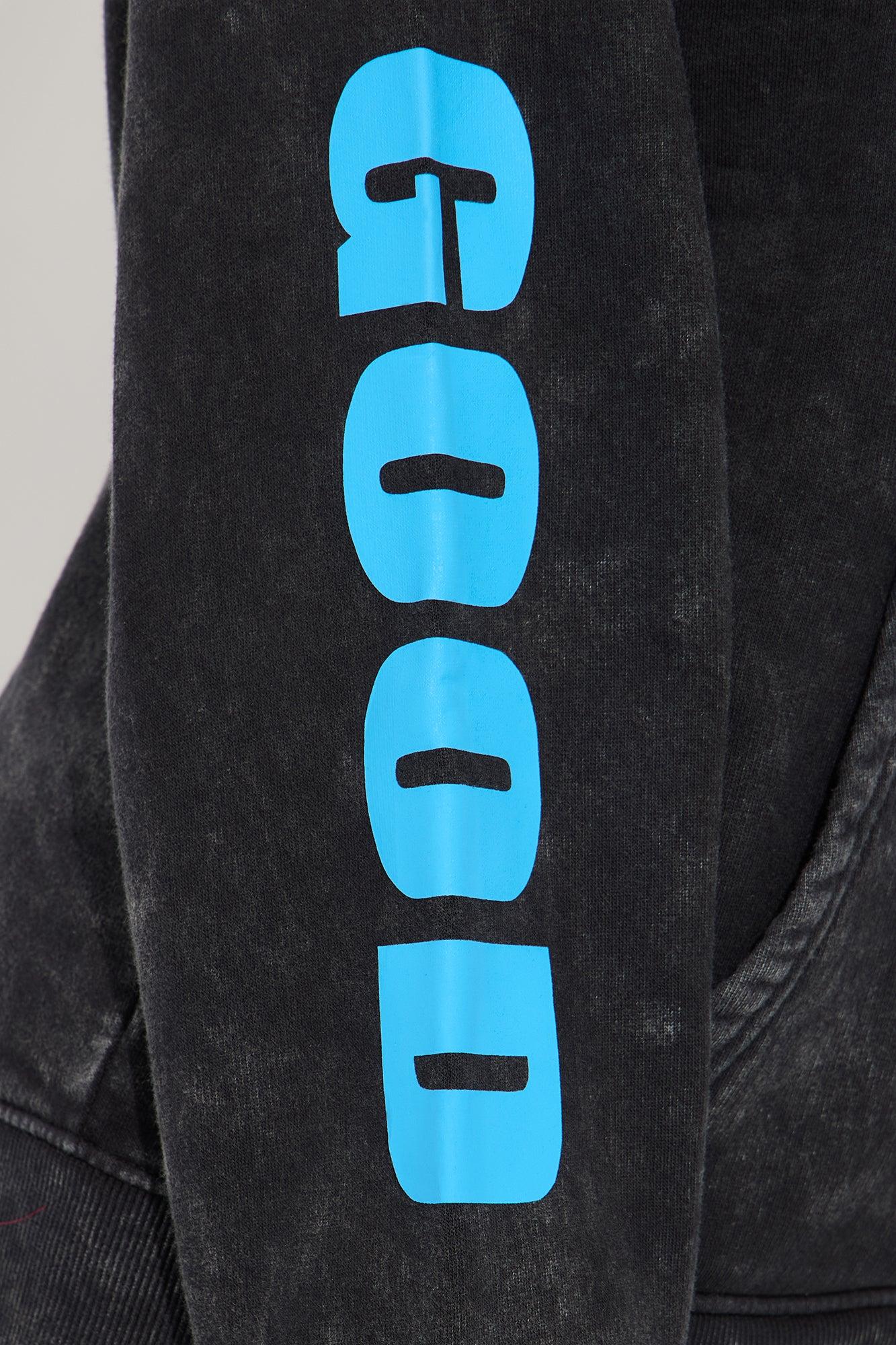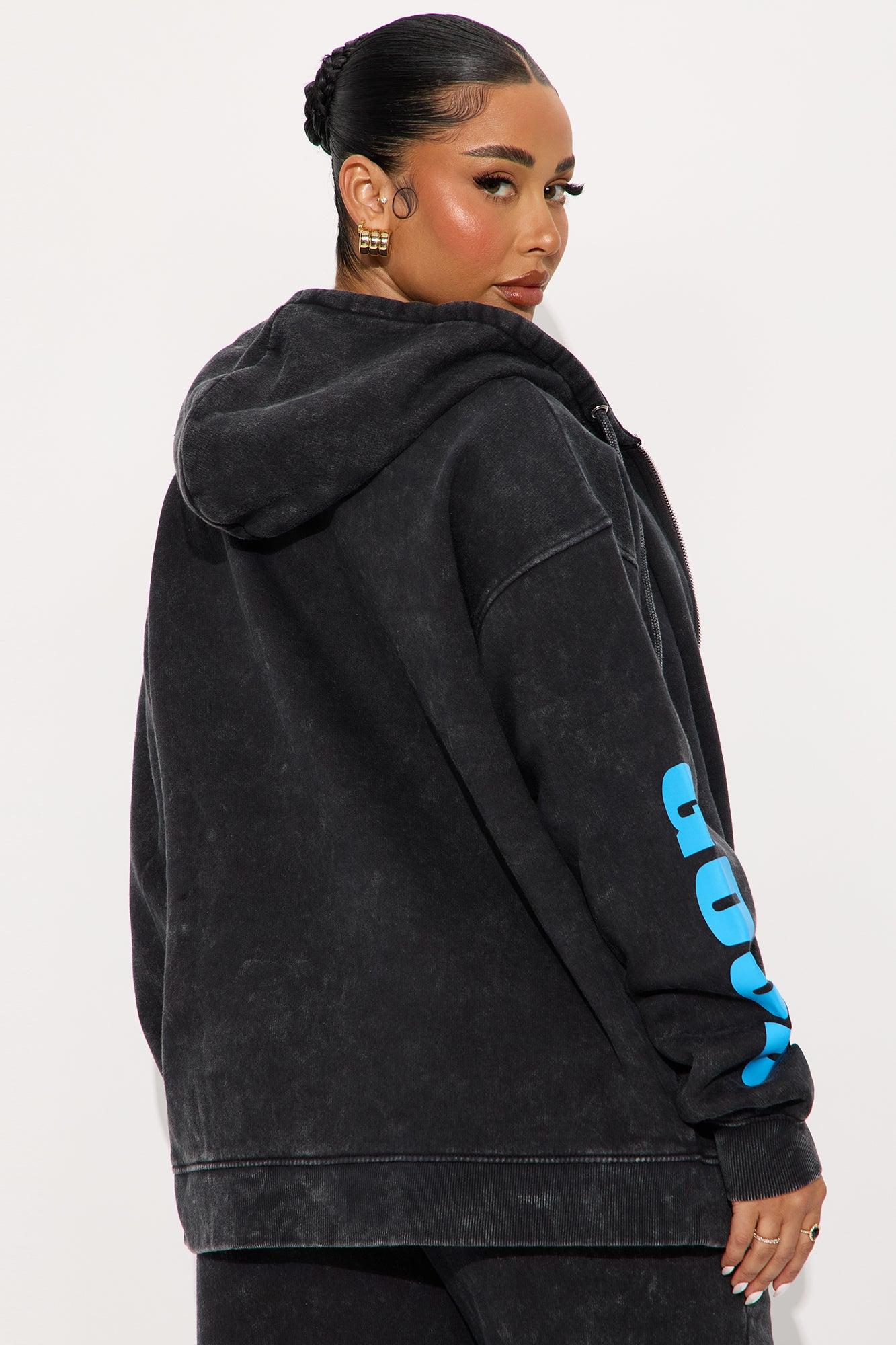 Available In Charcoal/combo. Sweatshirt Zip-Up Long Sleeve Hoodie Sleeve Puff Print Washed Pockets Pair With "Good Vibes AF Washed Fleece Pants" Disclaimer: Due To The Specialized Wash, Each Garment Is Unique. Disclaimer: Due To The Printing Process A Difference In Saturation May Occur. Each Garment Is Unique. Self: 60% Cotton 40% Polyester Imported