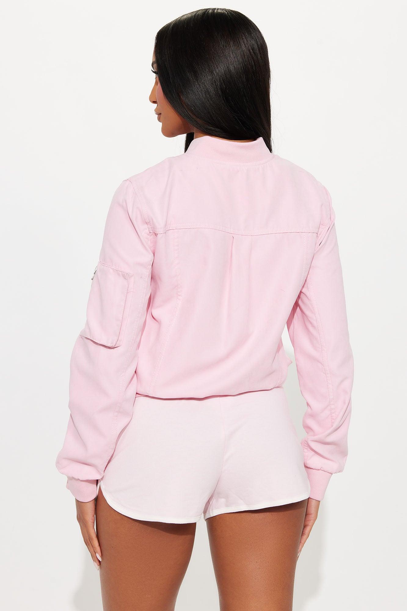 Good Vibes Faux Suede Bomber Jacket - Light Pink Female