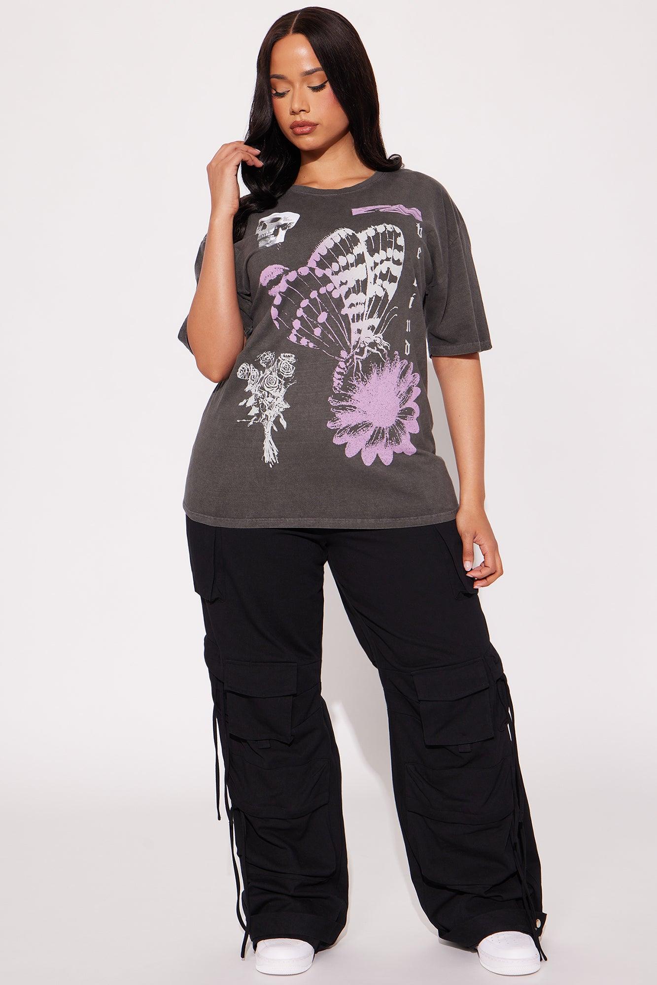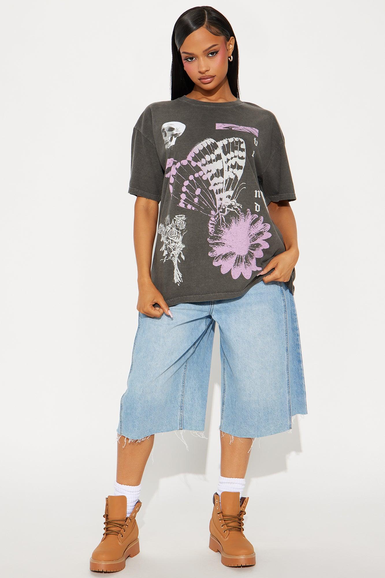 Got You Hooked Washed Oversized Tee - Black