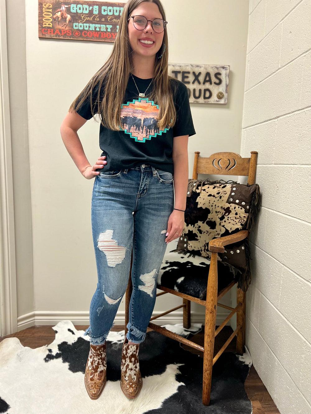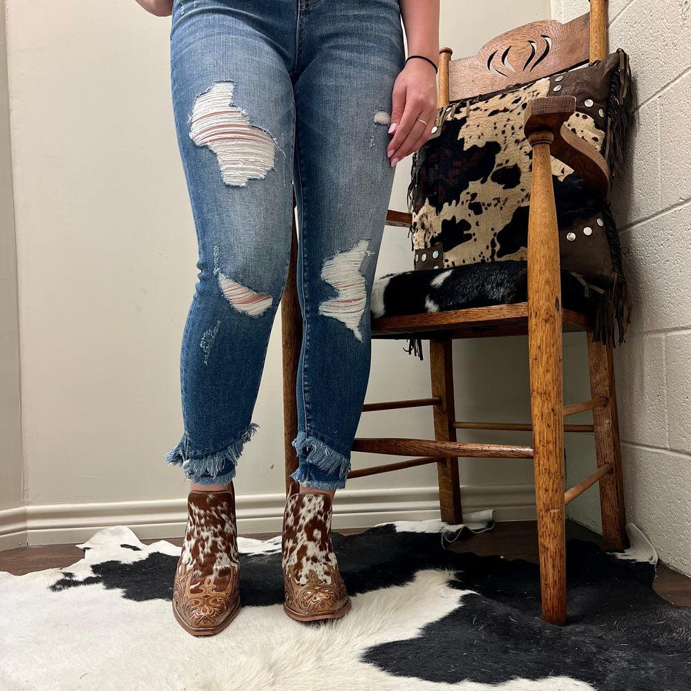 Code Bleu High Rise Straight Double Fray Hem Ankle Jeans