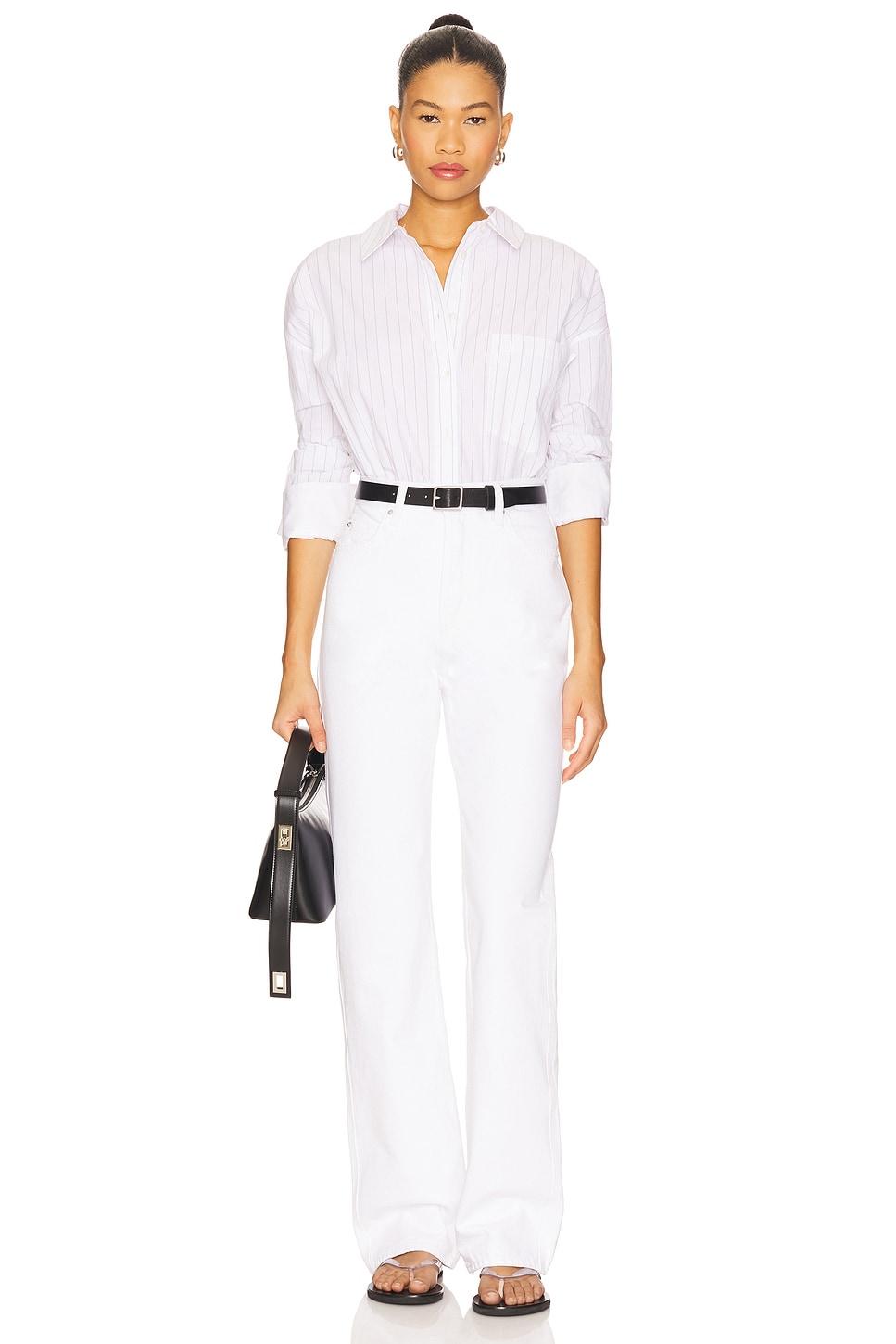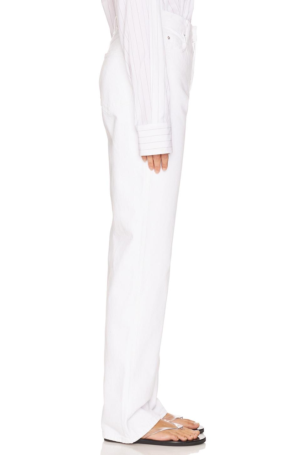 100% cotton. Machine wash cold. Button fly. 5-pocket styling. Contrast logo patch at back waistline. Midweight rigid denim fabric. 17" at the knee narrows to 16.5" at the leg opening. Made in US. Revolve Style No. GRLR-WJ707. Manufacturer Style No. GFJ10001 U25.