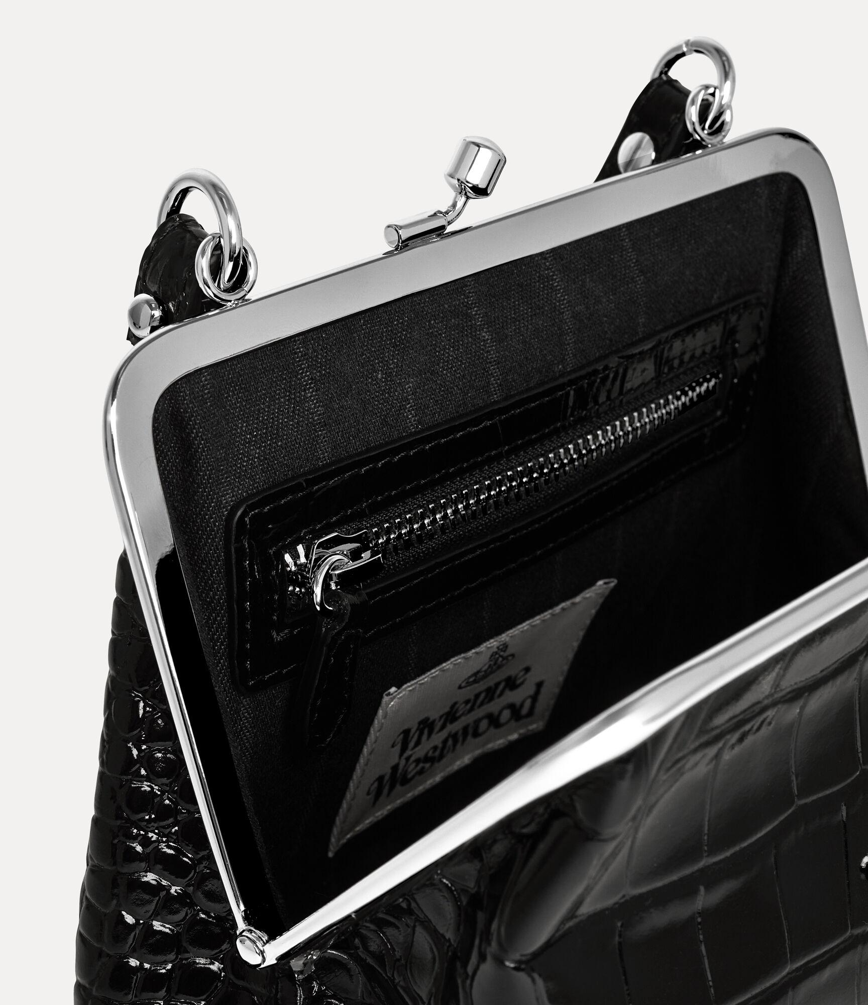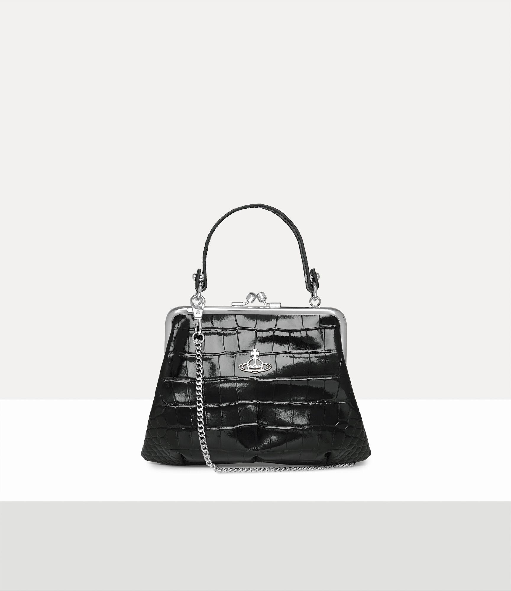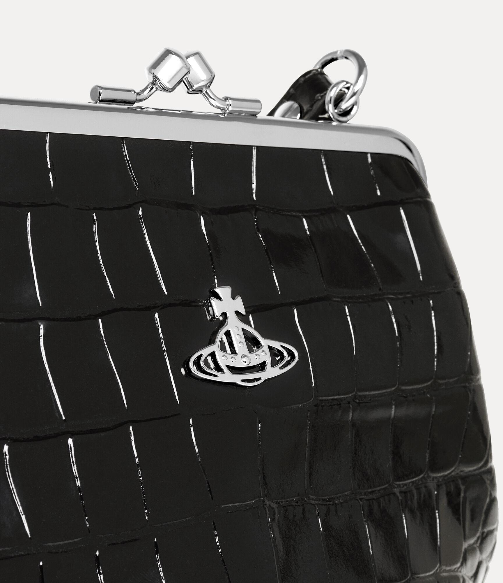 The silhouette of the Granny Frame purse is reminiscent of antique coin purses from the early 20th century, featuring a metal framework with a secure kiss-lock closure. The piece offers croc-effect embossing across the design, complete with our classic line orb motif on the front panel, synonymous with the house's ethos of launching the past into the future.