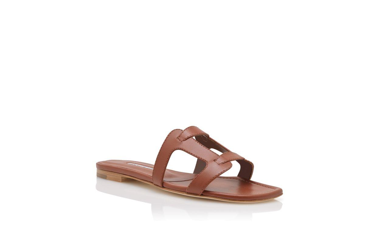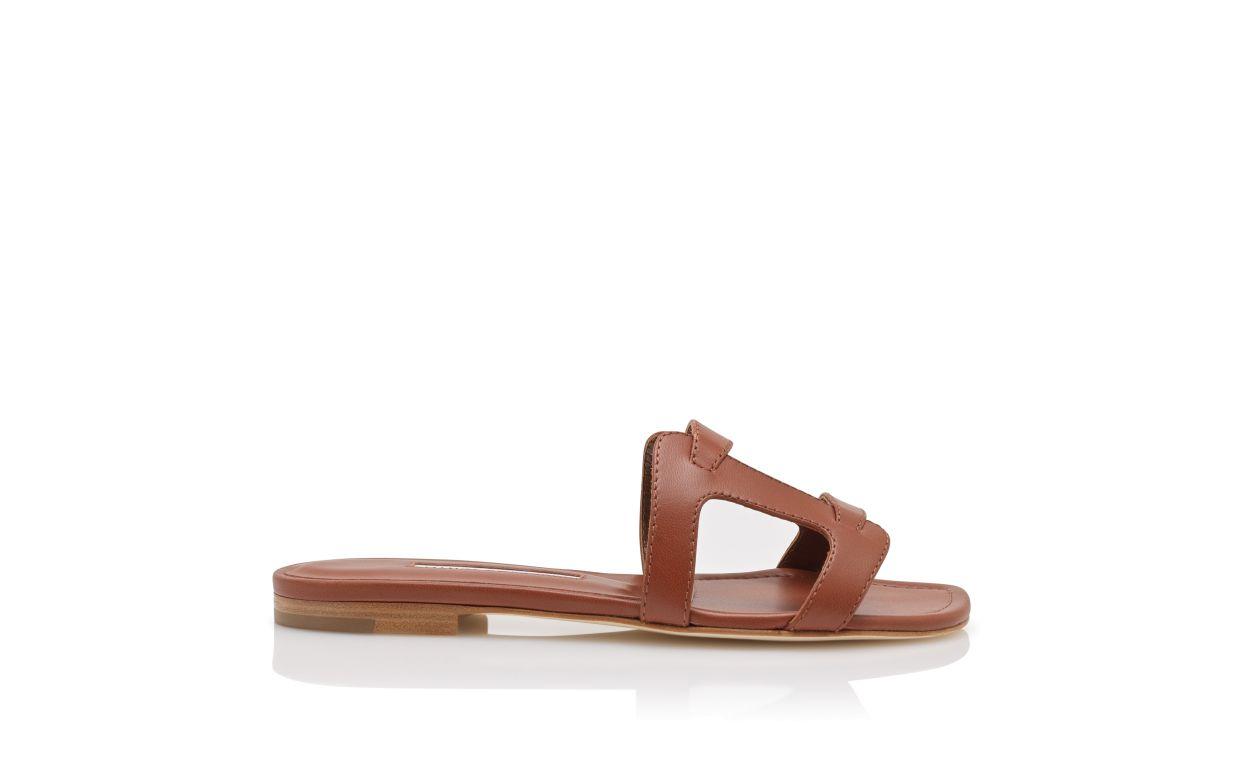 GRELLANUFLAT Brown Nappa Leather Flat Sandals