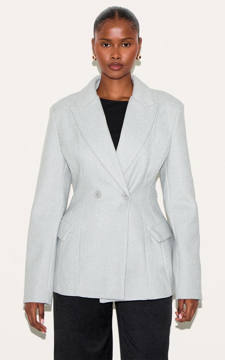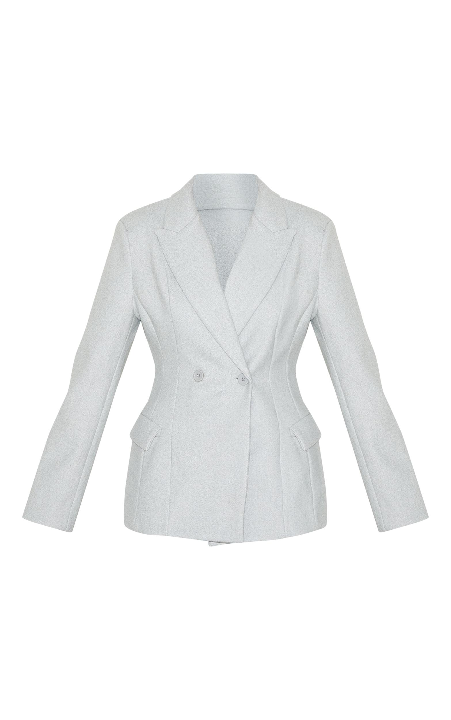 Crafted from a grey wool look material with a double breasted detail and a chic asymmetric design. Team this grey double breasted asymmetric wool look blazer with a pair of wife leg pants, shades, a shoulder bag and a pair of court heels.Length approx 73.5cm/29inch (Based on sample size US 4)Model wears size UK 8/ EU 36/ AUS 8/ US 4Model Height - 5ft 9inchp]:!mb-4inch>Brand: PrettyLittleThingCategory: OuterwearProduct type: Fitted BlazerColor: GreyMaterial: Faux WoolOccasion: Evening