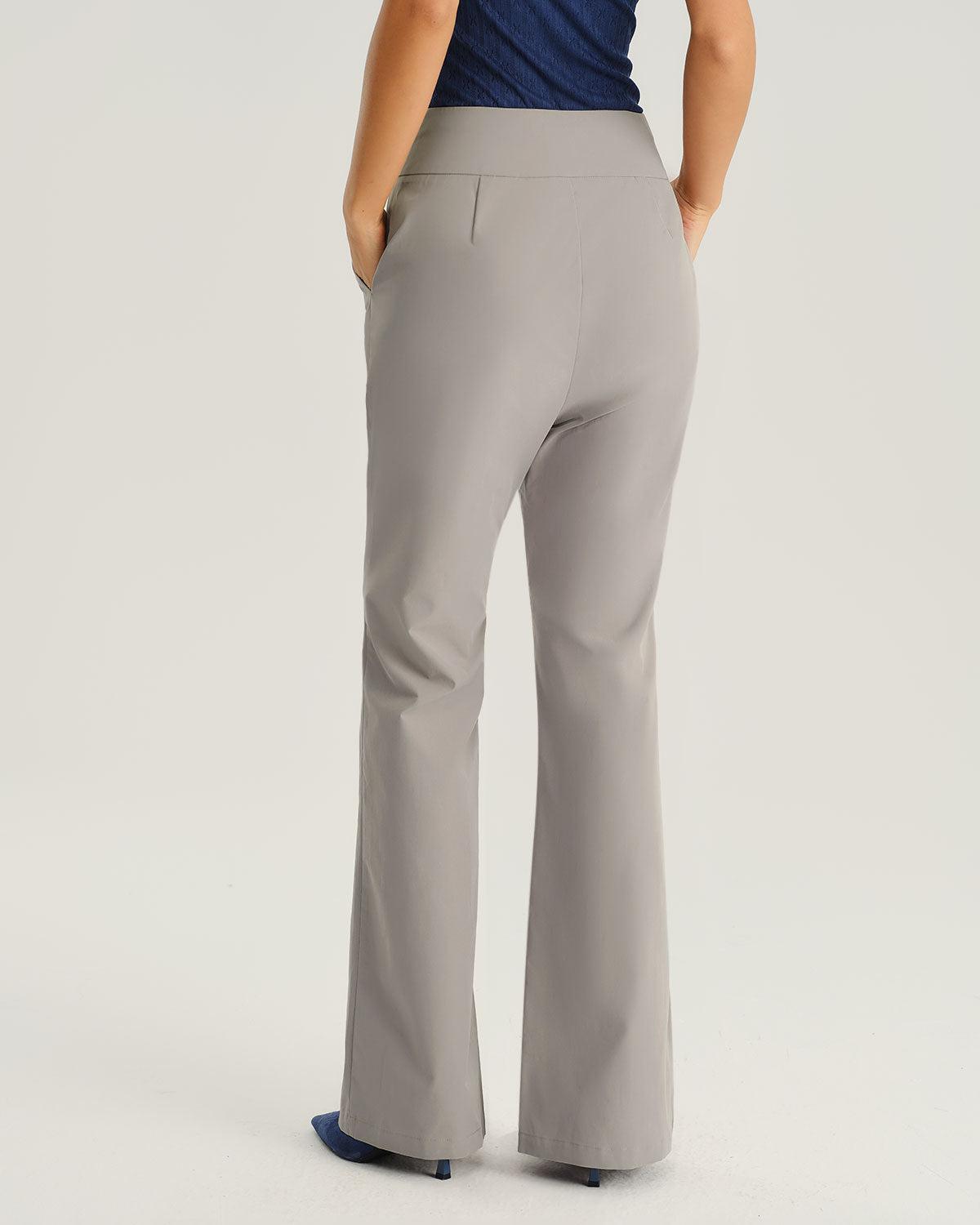 This is the power of curated suiting. We designed these grey high waisted pants to be the cornerstone of your office wear wardrobe, instantly upgrading your professional look. The brilliance lies in the silhouette and the fabric. The timeless flared pants cut creates an elongated, sophisticated line. But here’s why it’s perfect for work: We intentionally selected a no-stretch polyester fabric. This isn't a flaw; it's the secret to an all-day, tailored look. This substantial, structured material is what holds the perfect, crisp flare. It won't bag at the knees or sag by the end of your day, delivering a sharp, polished line from your first meeting to your last. Finished with functional pockets and a clean button closure, these are true tailored trousers for the modern woman. Feel powerful, confident, and perfectly in command. - Occasion: Office wear - Style: work - Fabric Stretch: No Stretch - Waist: High Waisted - Pattern Type: Solid - Embellishment: Button, Pockets - Pants Fits: Flared - Pants Type: Flare - Length: Normal - Fabric: Polyester