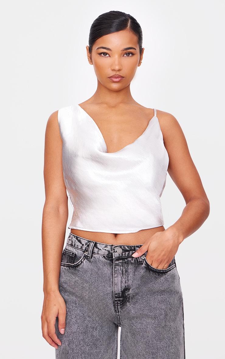 When the party calls so does this grey metallic satin cowl long top. Brought to you in a grey hue metallic satin material with a cowl neckline, this long top is all the new you need. Pair with jeans, slip on heels and silver accessories for a chic finish like no other. Length approx 38cm/15inch (Based on a sample size UK 8) Model wears size UK 8/ EU 36/ AUS 8/ US 4Model Height - 5ft 6inchp]:!mb-0inch>Category: TopsProduct type: Vest TopColor: GreyMaterial: SatinDesign: PlainNeckline: CowlSleeves: SleevelessOccasion: Evening