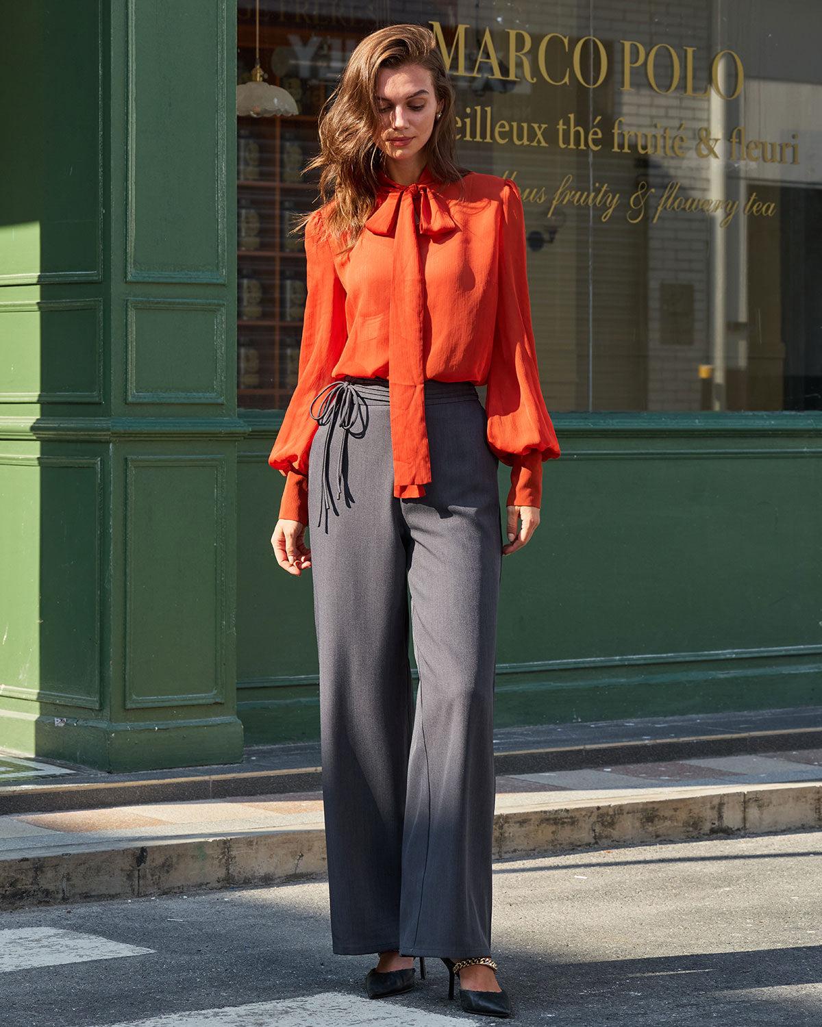 - Occasion: Daily - Style: Casual - Fabric Stretch: No Stretch - Waist: Natural Waisted - Embellishment: Ruched, Tie - Pants Fits: Straight - Pants Type: Straight - Length: Normal - Fabric: Polyester 95.0%, Spandex 5.0%