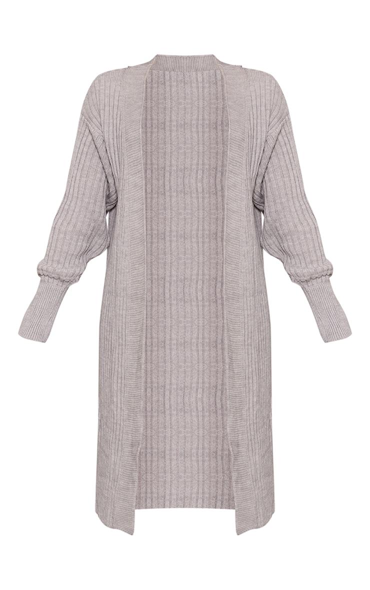 The art of considered layering begins here. This grey ribbed knitted midi cardigan offers a sophisticated approach to trans-seasonal dressing. The ribbed knit lends subtle texture and structure, while the midi length offers versatile styling options. Consider it a modern essential, perfectly complementing a pair of tailored pants from our bottoms category for an effortless, yet refined, daytime ensemble.Length approx 104cm/41inch (Based on a sample size S)Model wears size Sp]:!mb-4inch>Category: KnitwearProduct type: Oversized CardiganColor: GreyMaterial: Rib KnitDesign: PlainOccasion: Day