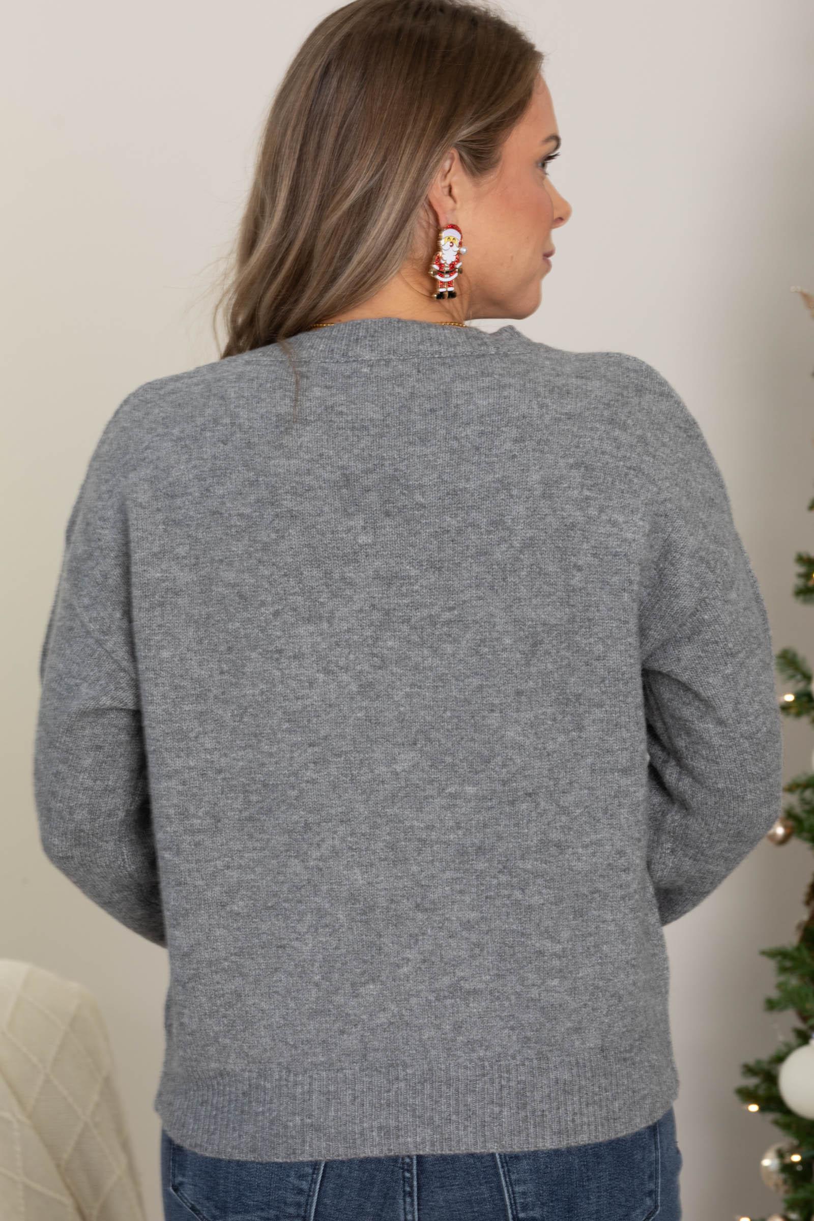 Product Details Colors: Grey, White, Ivory, Red Print: Graphic Santa Face Neckline: Round Sleeve: Long Sleeve Hemline: Straight Brand: Debut Material and Care 65% Polyester 13% Acrylic 13% Nylon 6% Wool 3% Spandex Hand Wash Cold Hang/ Line Dry Size and Fit Small/Medium: Bust 44" Waist 42" Length 22" Medium/Large: Bust 46" Waist 44" Length 23" Erica is 5’7” and wearing a small/medium