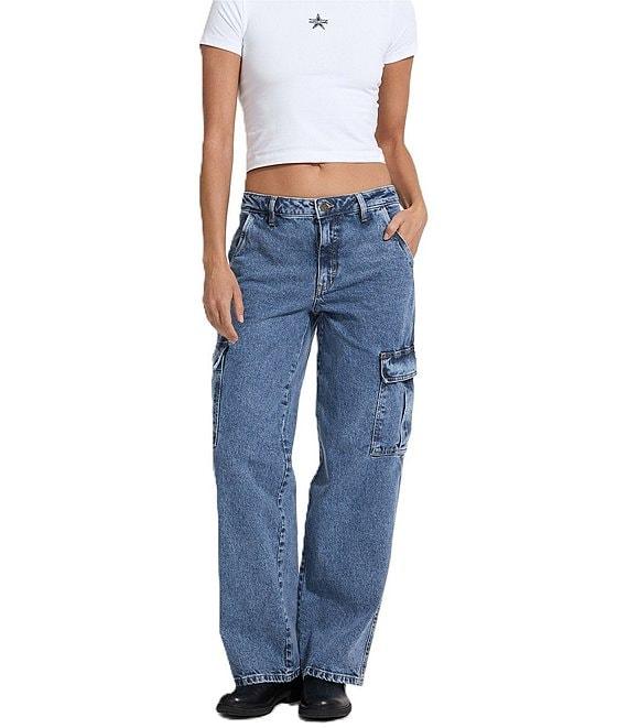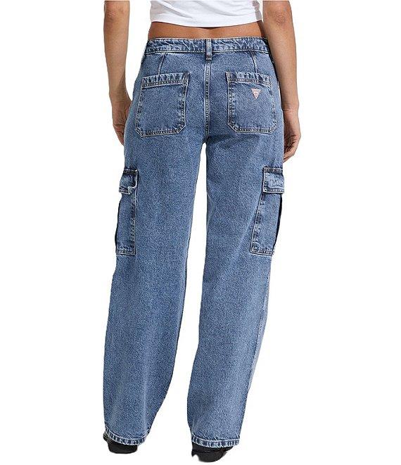 From Guess, these jeans feature: Mid rise Belt loops Zip/button front closure 2 slanted front pockets 2 back pockets (1 with iconic patch) 2 flap-closure cargo pockets Cotton/elastane/spandex denim Machine wash/tumble dry Imported.