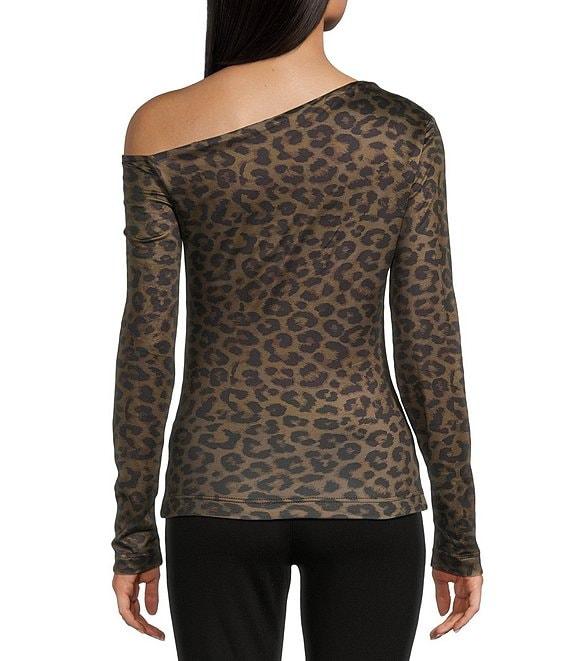 Guess Long Sleeve One Shoulder Anita Animal Printed Top