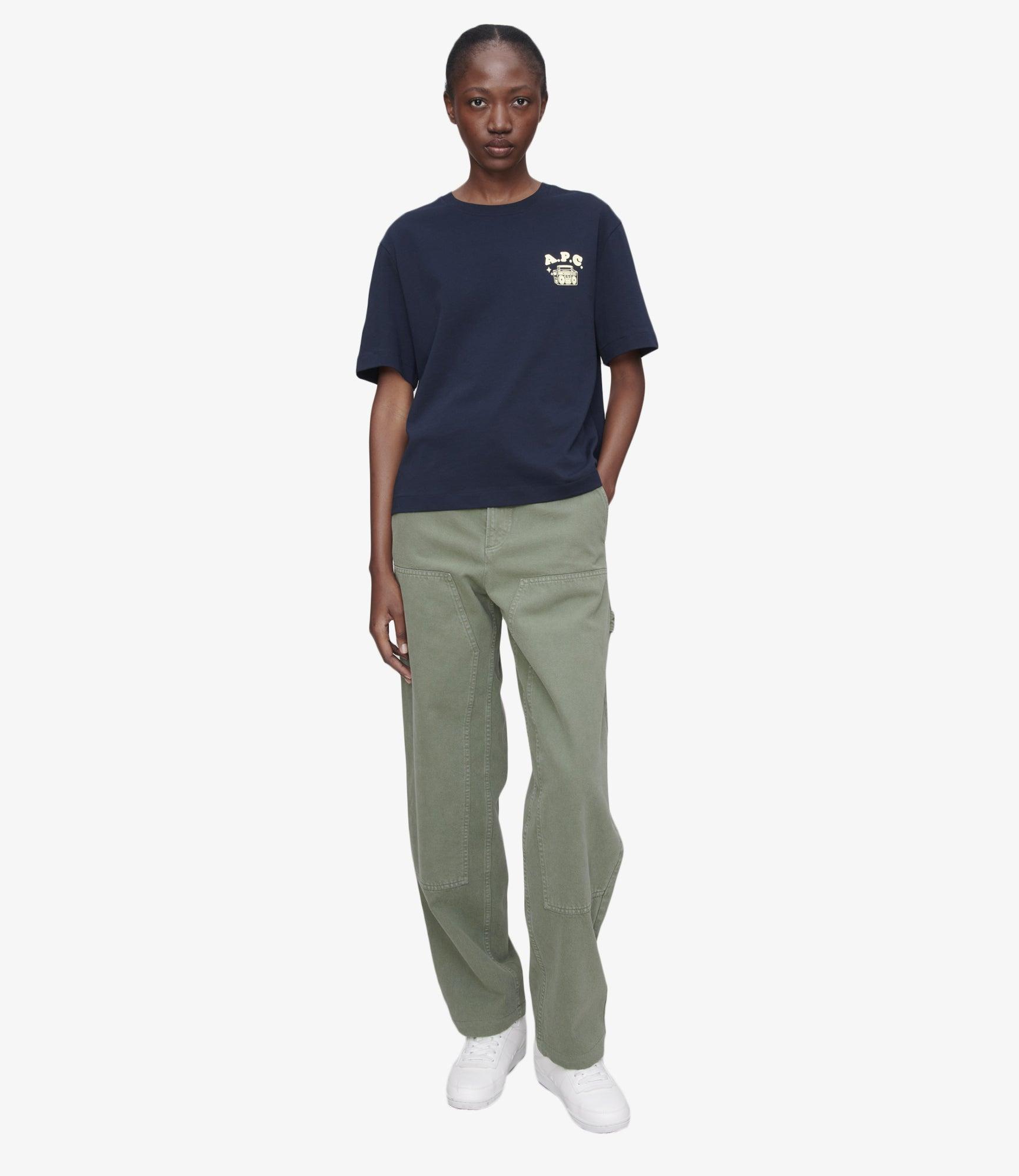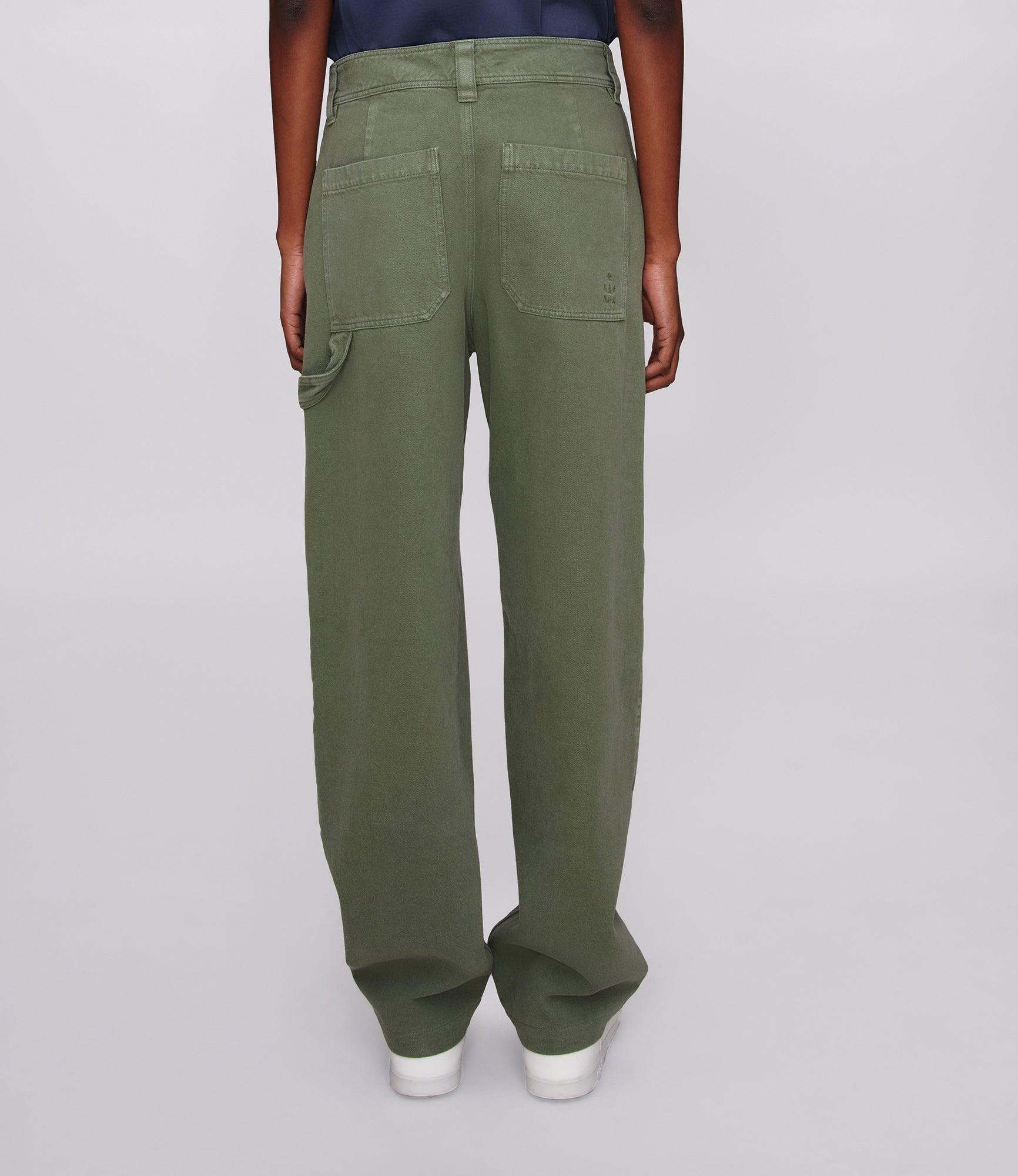 A.P.C. pants.- Heavyweight workwear-style material. - Straight cut with a loose fit. - Mid-rise. - Reinforced knees. - Two diagonal pockets in front. - Two back pockets and two on the side of the legs. - One hammer pocket on the left leg. - Zip fly.