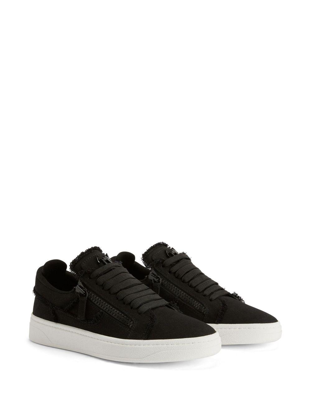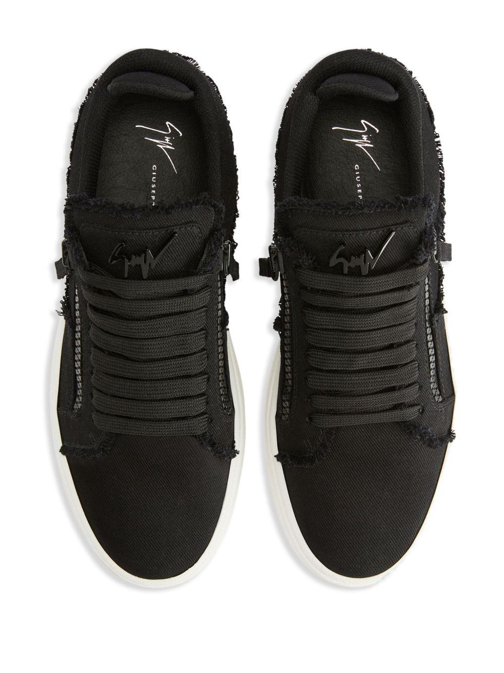 Giuseppe Zanotti GZ94 logo-plaque sneakers | Black | black | cotton | tonal logo plaque | front lace-up fastening | short side zip fastening | round toe | branded leather insole | flat rubber sole | Rubber/Cotton/Calf Leather | Low-Tops | Sneakers | Shoes | Men