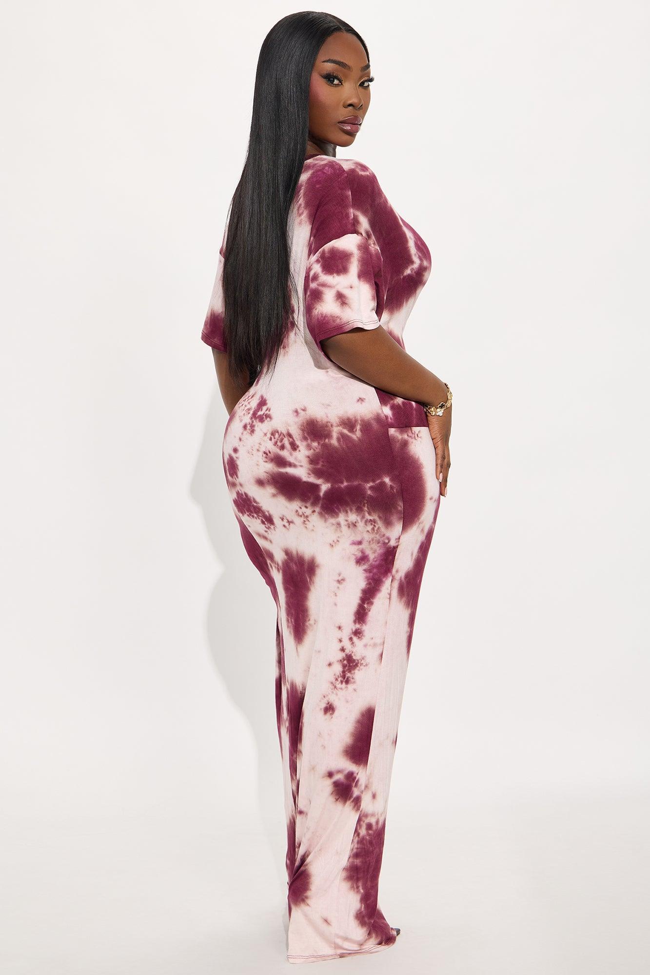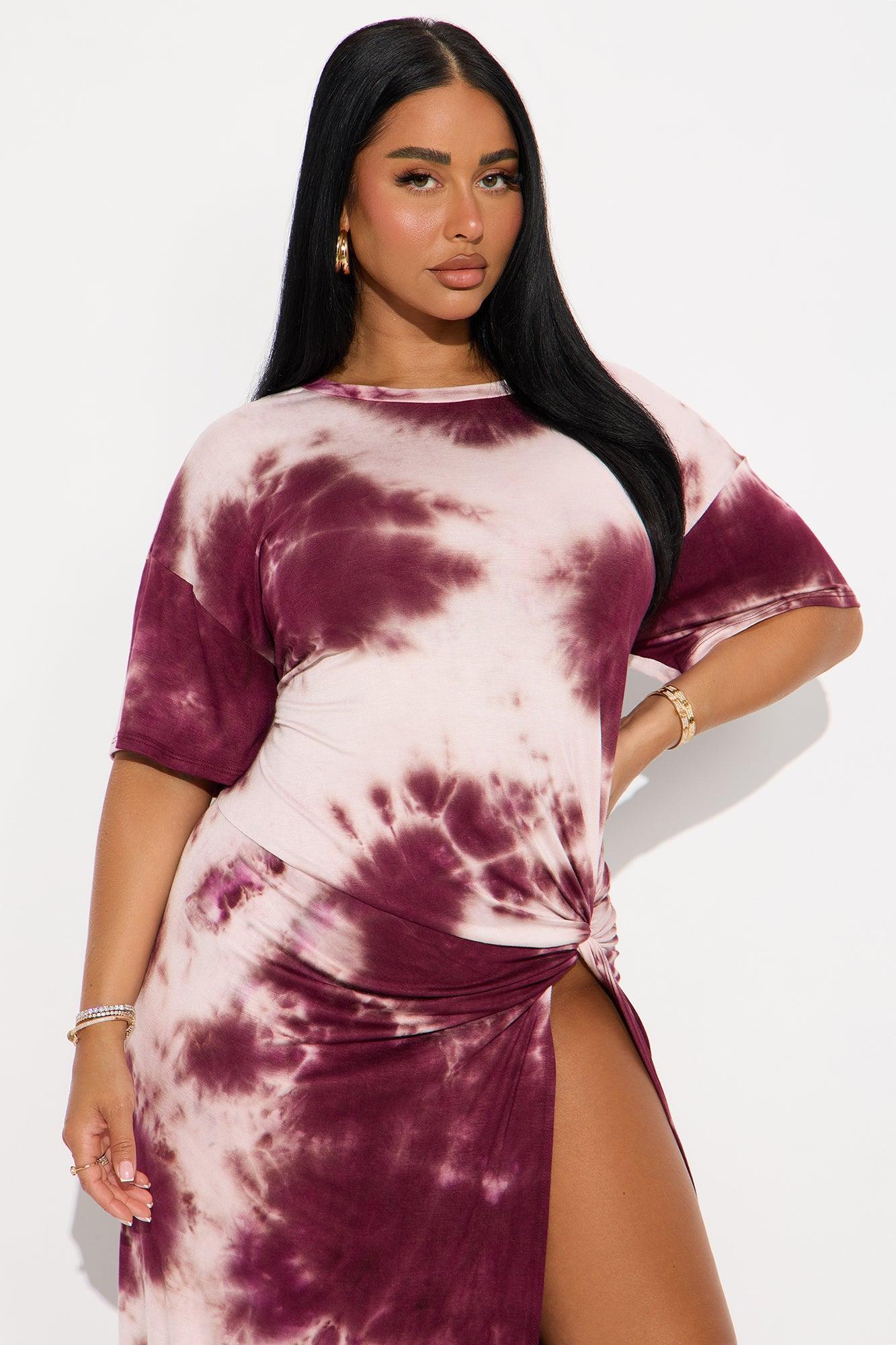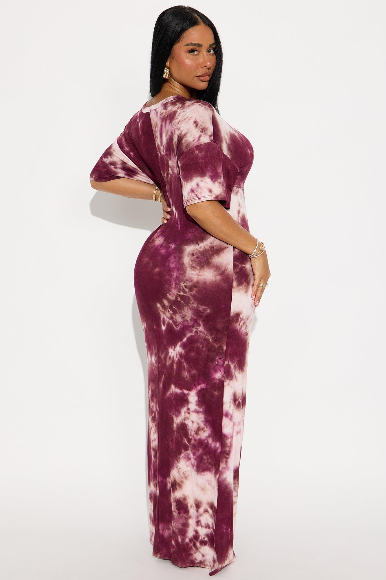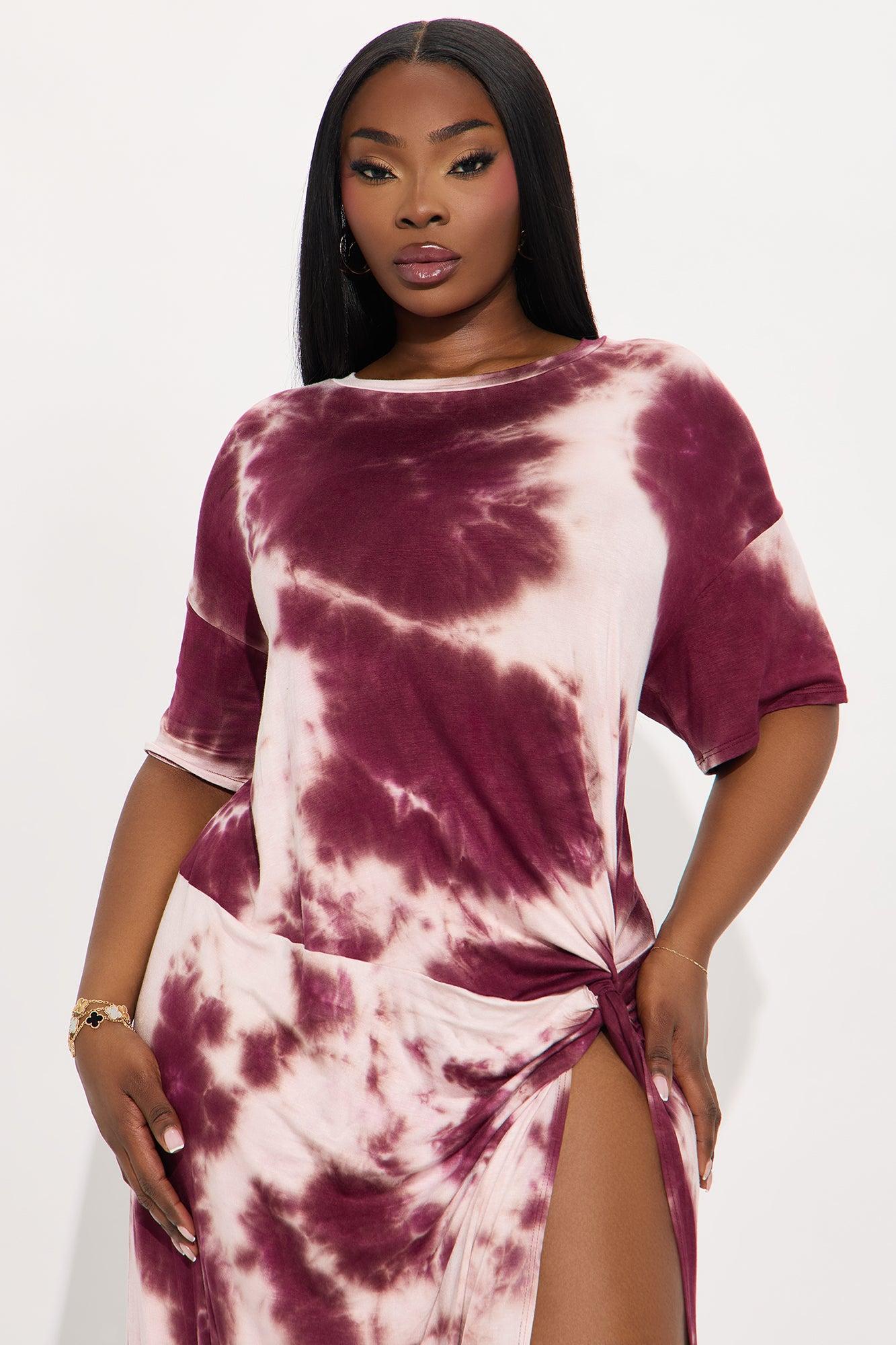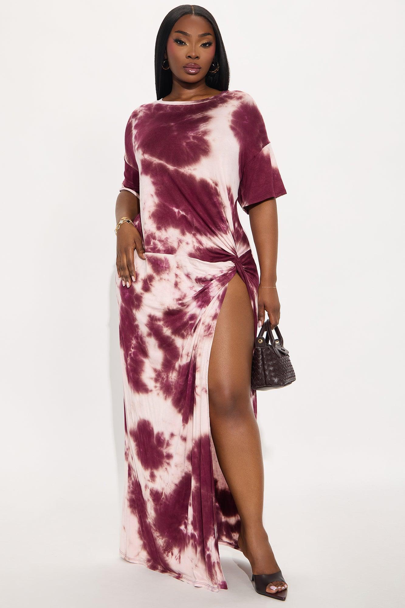 Hadley Tie Dye High Slit Tshirt Maxi Dress - Burgundy Female