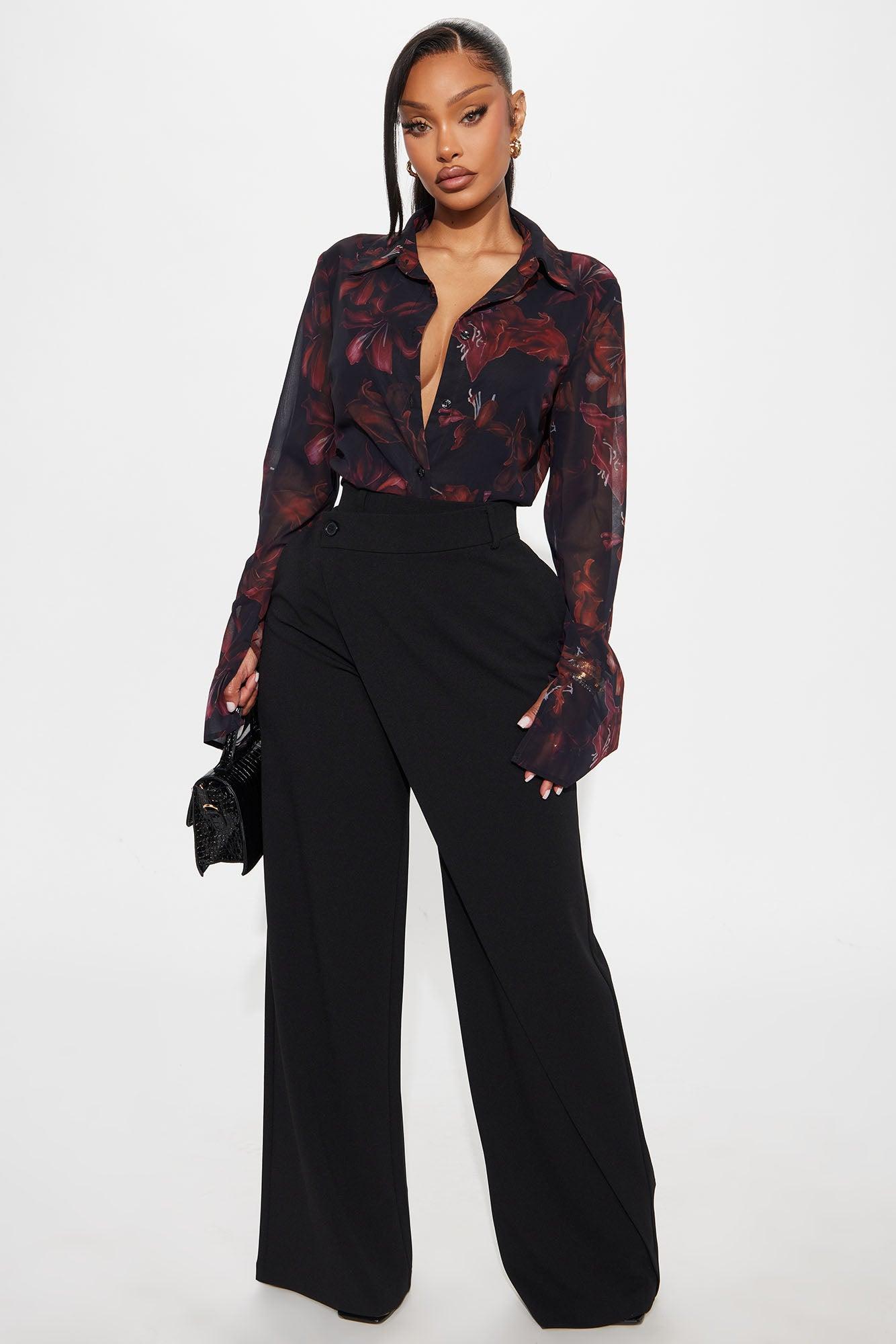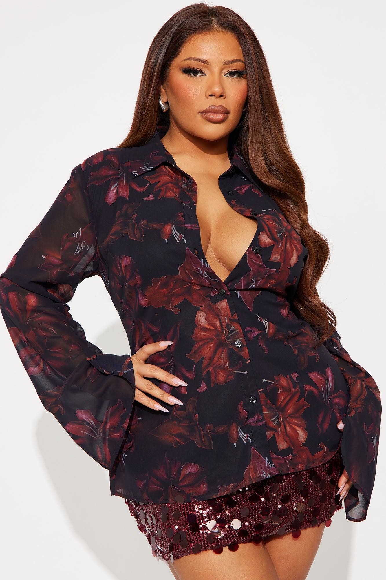 Hailey Floral Chiffon Shirt - Black/Red Female