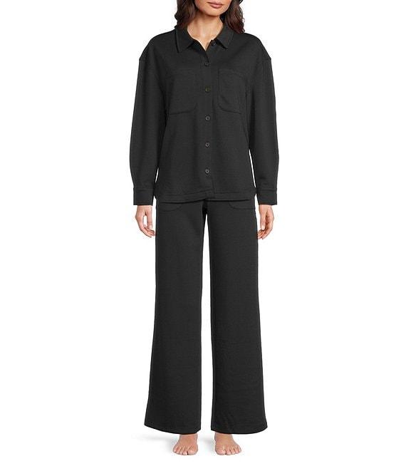 From Half Moon by Modern Movement, this lounge top features: Knit fabrication Button down collar neckline Long sleeves Button-front closure Modal/polyester/spandex Machine wash cold/tumble dry low Imported.