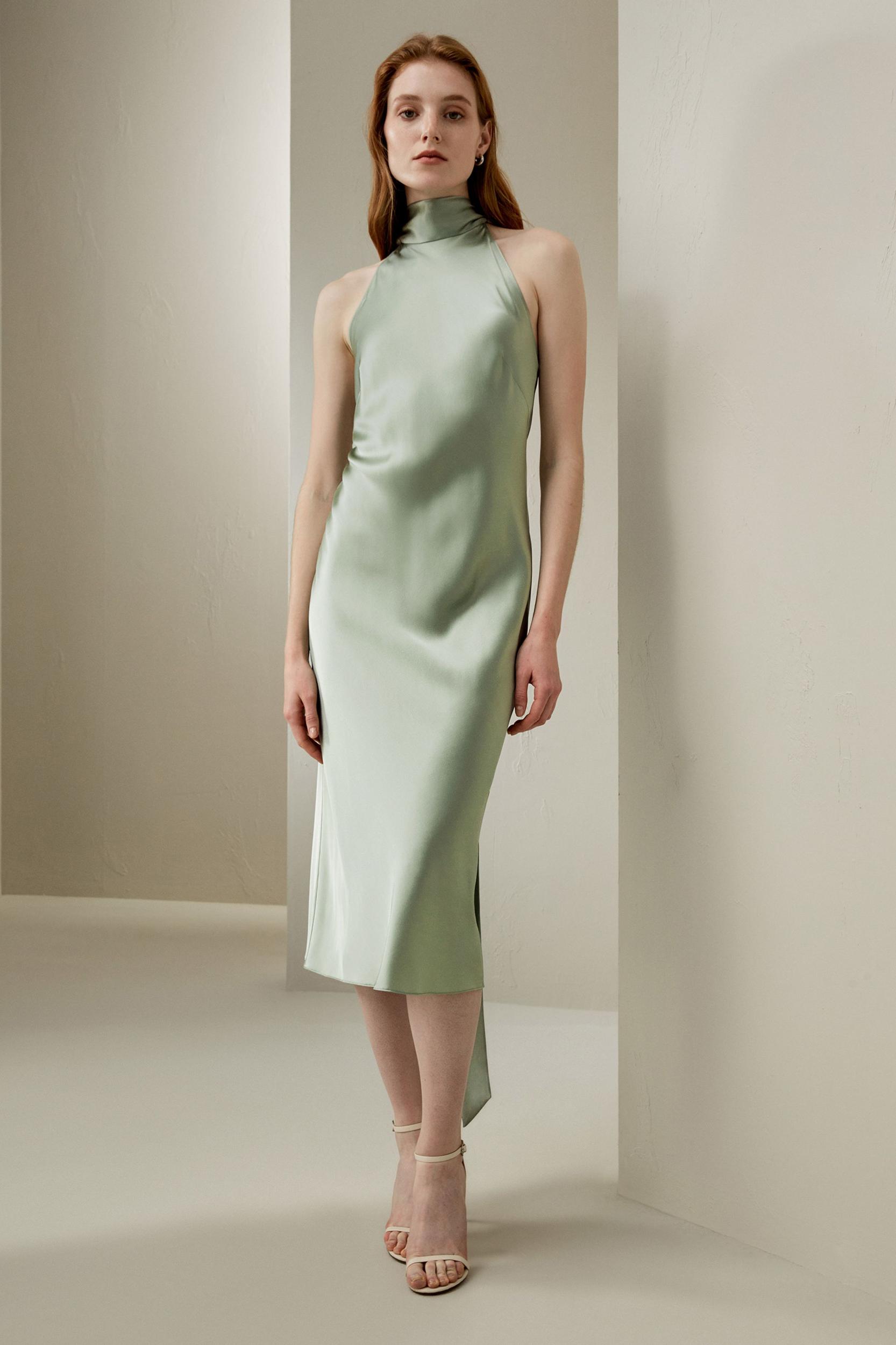 Shop our collection of satin halter midi dresses, perfect for weddings, formal events, and more. These dresses are made from 100% silky satin and offer the perfect balance of style and comfort. Upgrade your wardrobe with our luxurious dresses.
