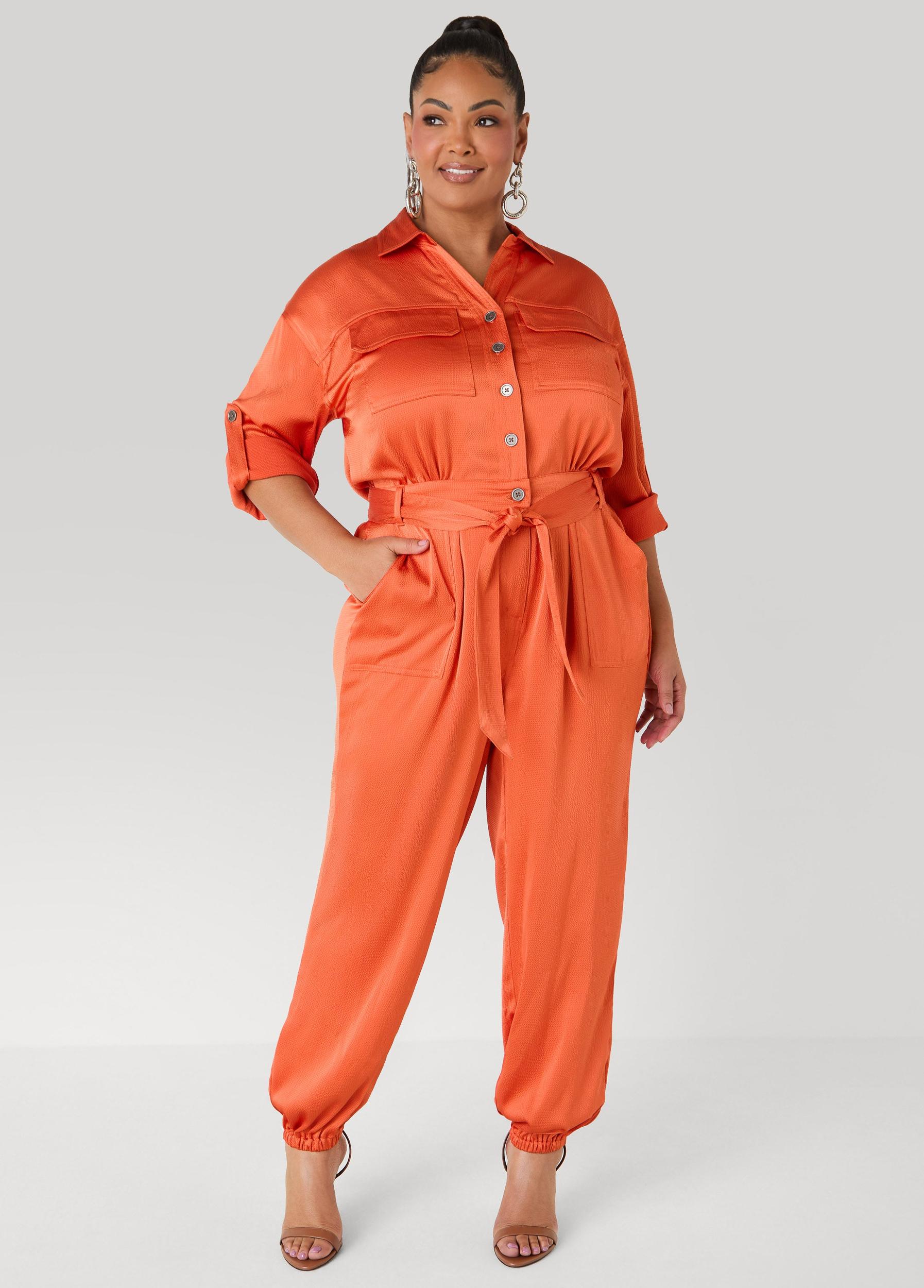 Glossy hammered satin sets the mood in this jogger-style jumpsuit that knows exactly what it’s doing. Button tabs at the sleeves invite a subtle reveal as sash ties pull the waist in close before falling into playful elasticized ankle cuffs. Smooth, sultry and a little bit bold, it’s the kind of piece that makes every step feel intentional.