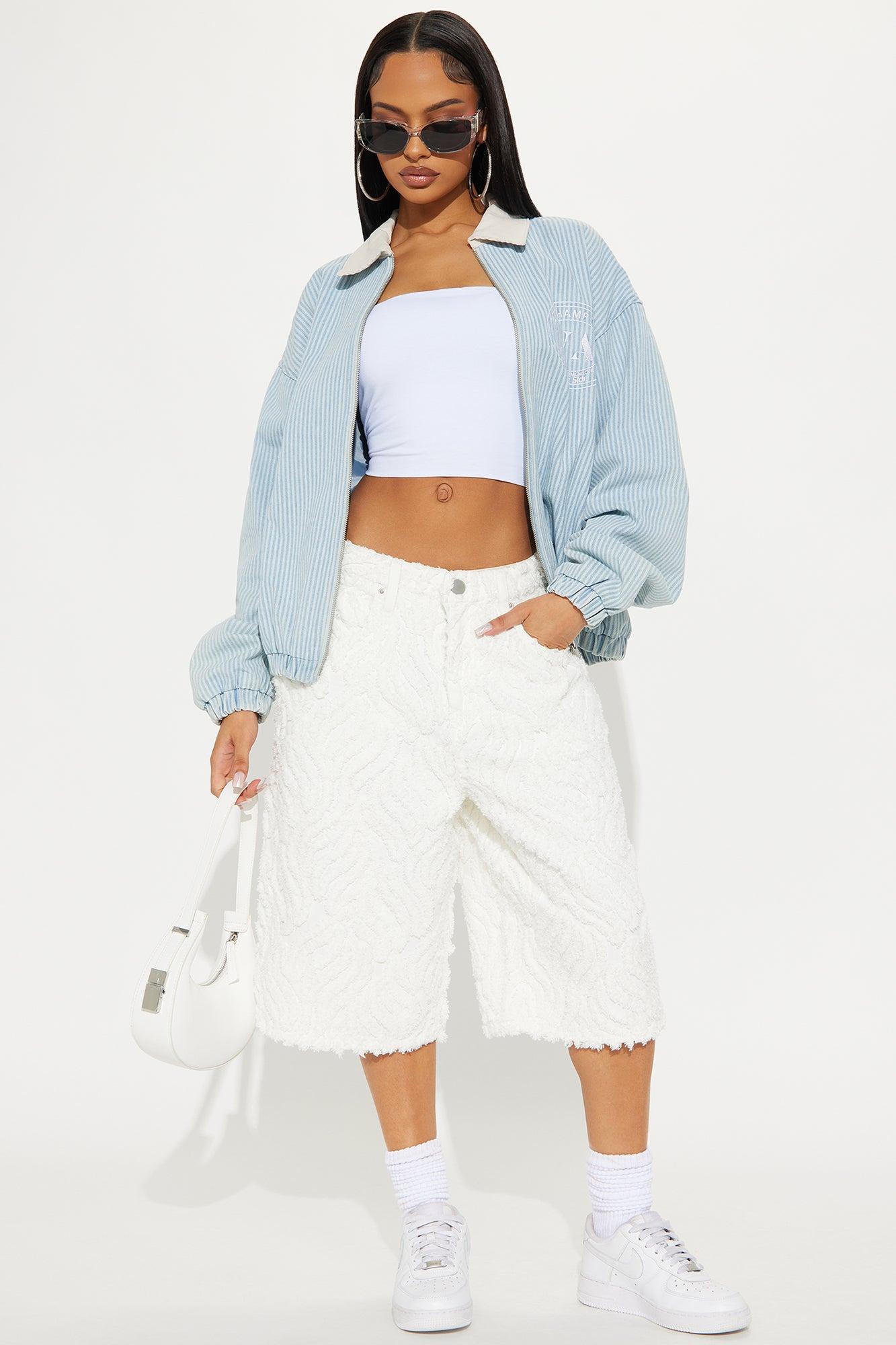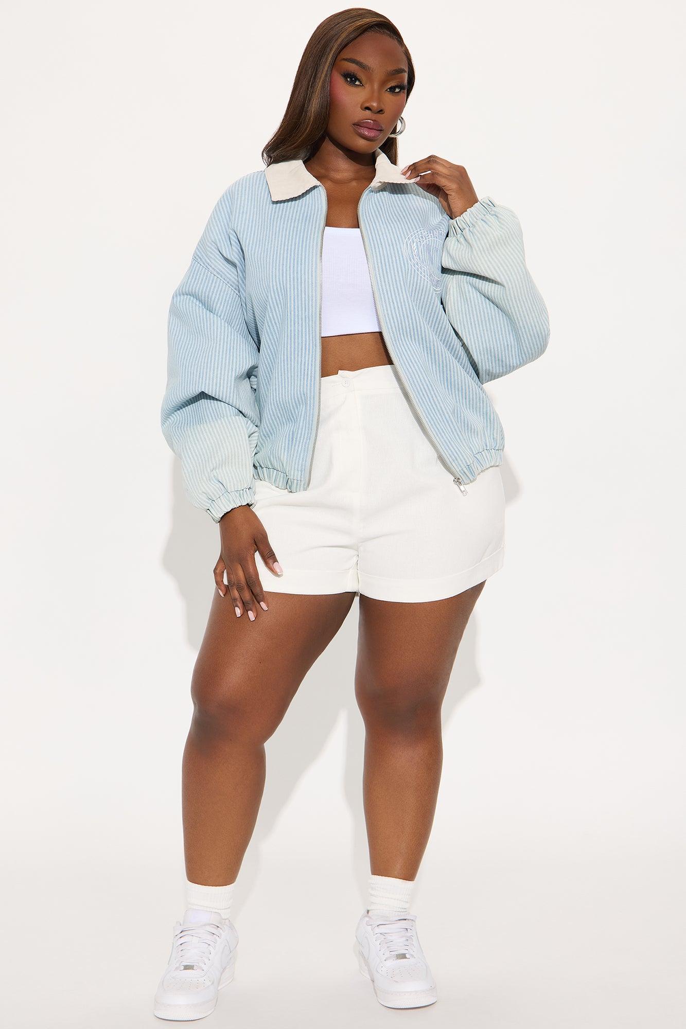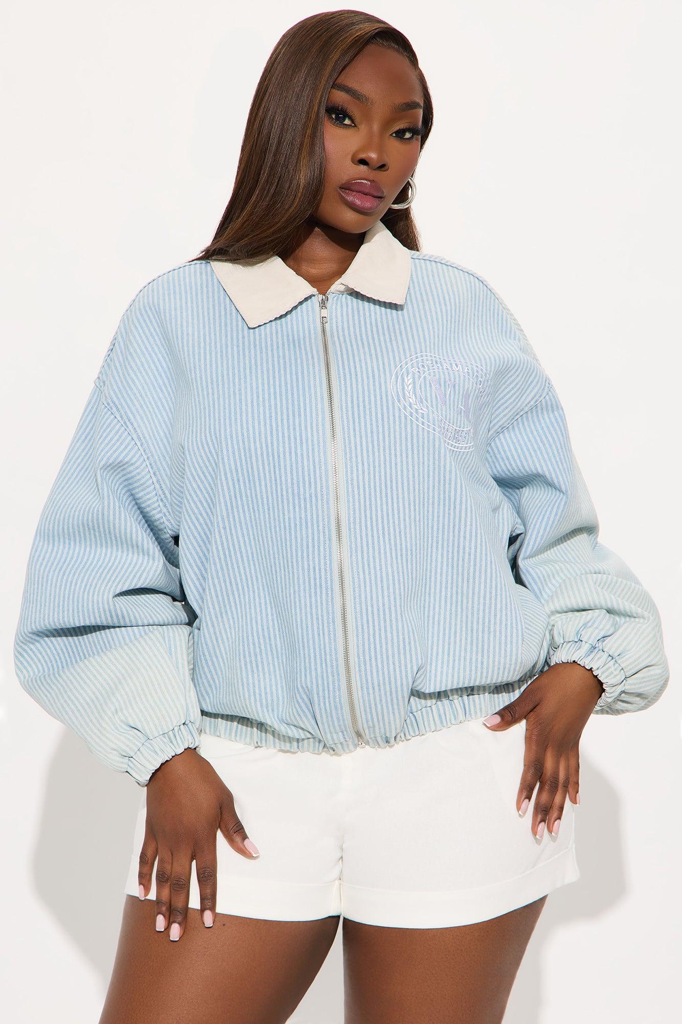 Hamptons Pinstripe Denim Bomber Jacket - Blue/combo Female